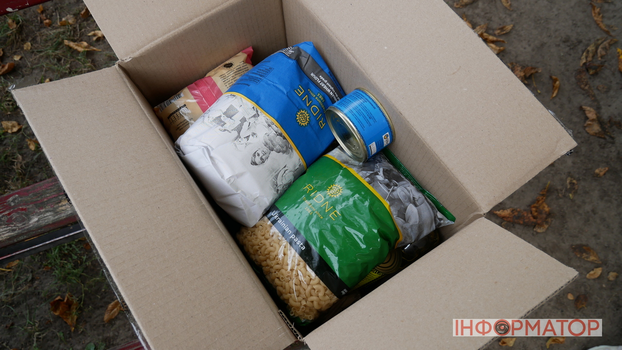 У наборах є різноманітні крупи, борошно, цукор, печиво, консерви, олія, тушонка та згущене молоко