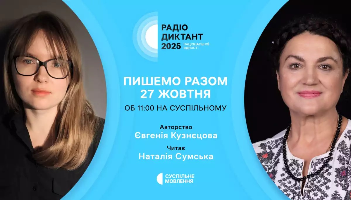 Радіодиктант національної єдності, який традиційно проводять з нагоди Дня української писемності та мови, цьогоріч відбудеться у понеділок, 27 жовтня, об 11:00. Авторкою тексту стане письменниця, перекладачка та науковиця Євгенія Кузнєцова, а читатиме його народна артистка України, акторка й телеведуча Наталія Сумська. Про це повідомили на сайті Суспільного, передає Інформатор.