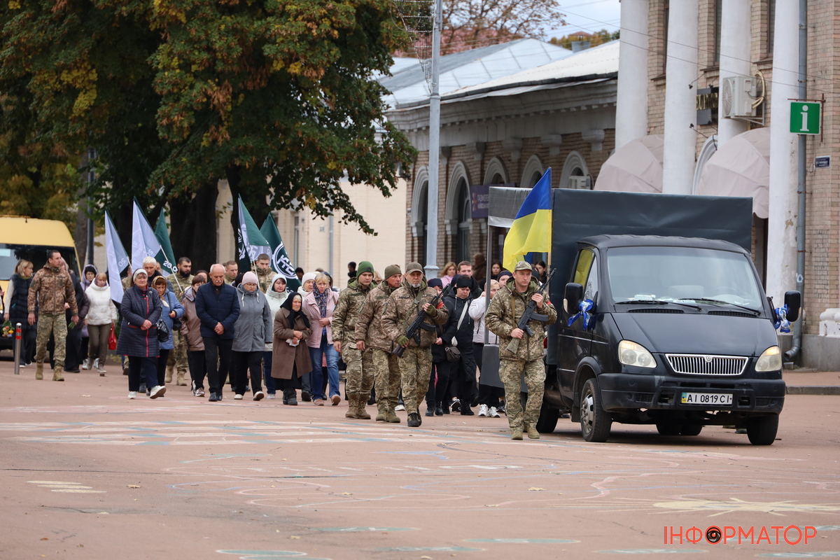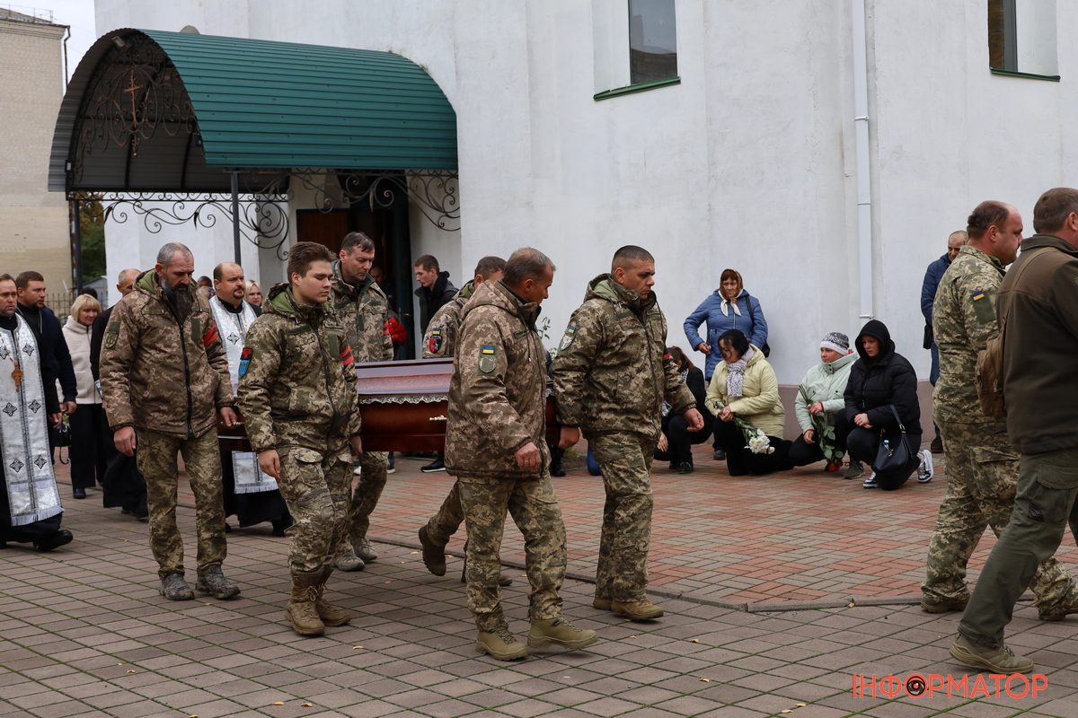 Після короткої служби та прощання біля батьківського дому на вулиці Заводській тіло військового провезли вулицями Грушевського та Гімназійною. Біля храму почулася вже всім знайома мелодія “Гей, плине кача”, тепер її вмикають під час супроводу траурного кортежу містом. Здаля лунали сирени поліцейського супроводу, попереду замайорів блакитно-жовтий прапор, всі стали на коліна. Військові вишикувались із прапорами, на яких був напис “20 ОПБС К-2”, що розшифровується як 20-й окремий полк безпілотних систем “К-2”.