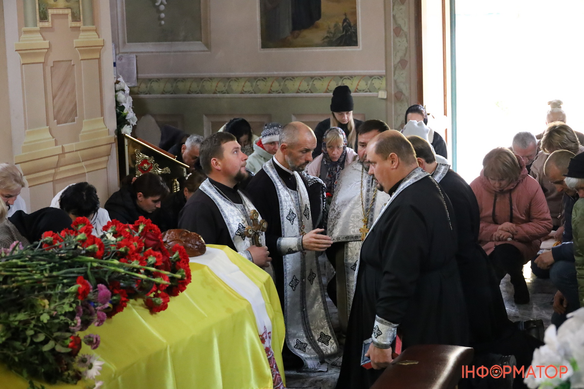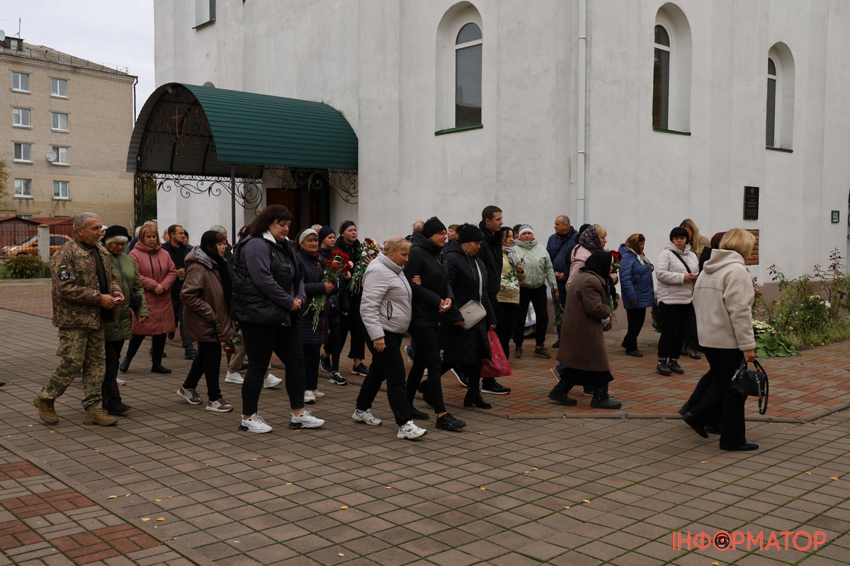 Близько 11:00 біля Алеї Героїв та Храму Воскресіння Христового поодиноко стояли люди. Із квітами у руках чекали військового, серце якого зупинилося ще півтора роки тому, але тільки цього осіннього дня родина та місто змогли його гідно провести в останню путь. Близько сотні людей прийшли попрощатися зі своїм другом, однокласником, товаришем, побратимом. Доєдналися до вшанування пам’яті місцевого захисника і просто небайдужі жителі міста.