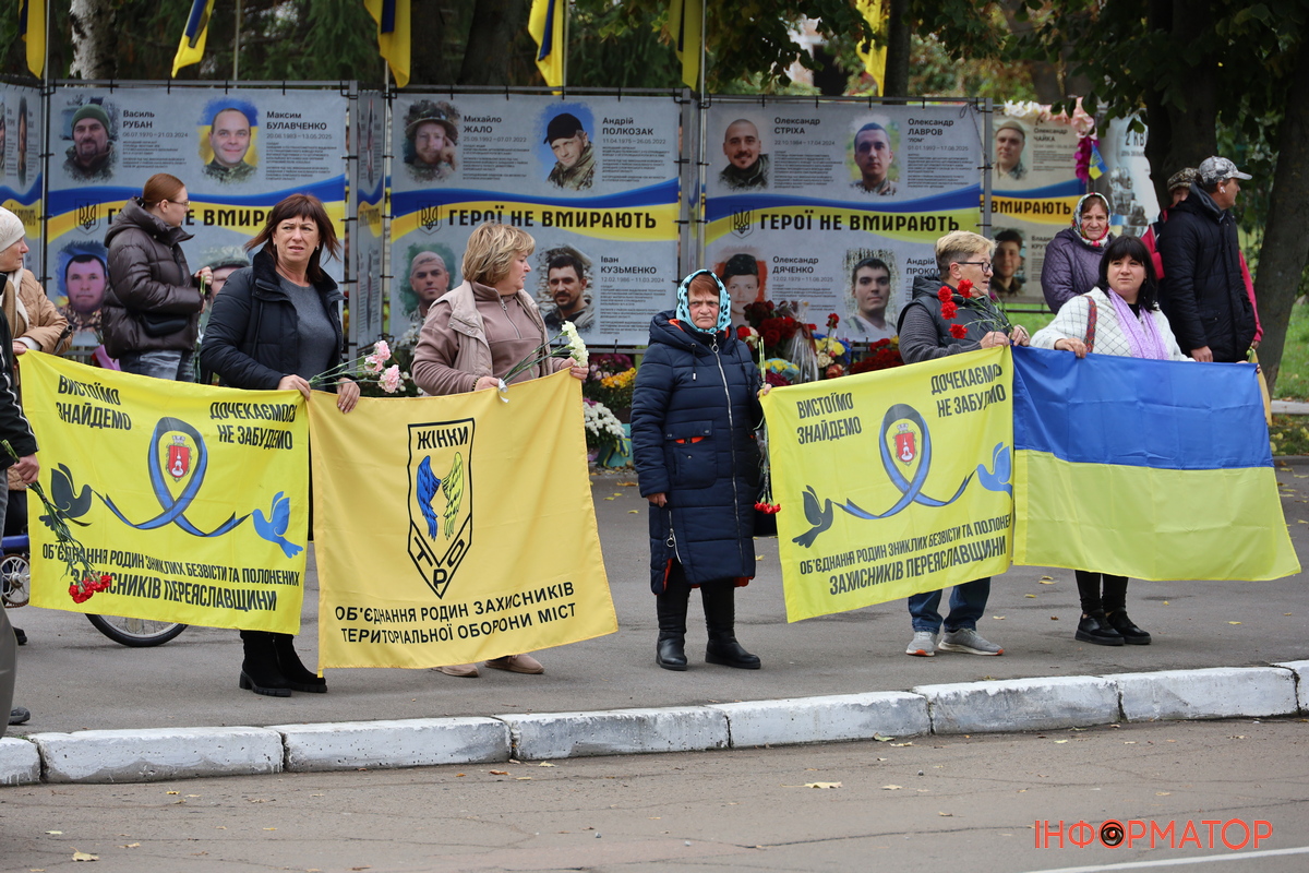 На узбіччі біля Алеї стояли жінки з об’єднання родин зниклих безвісти та полонених захисників Переяславщини та об’єднання родин захисників ТрО. Вони тримали прапори в підтримку не тільки полеглого військового, а й дружини та матері Дмитра, які також були учасницями їхньої спільноти. Одна із жінок із об’єднання розповіла, що родина Дмитра робила два ДНК-тести для ідентифікації чоловіка: “Його підтвердили по ДНК ще у листопаді минулого року, але рідні з цим не погодилися і робили повторне дослідження”. У нього також залишилося двоє дітей.