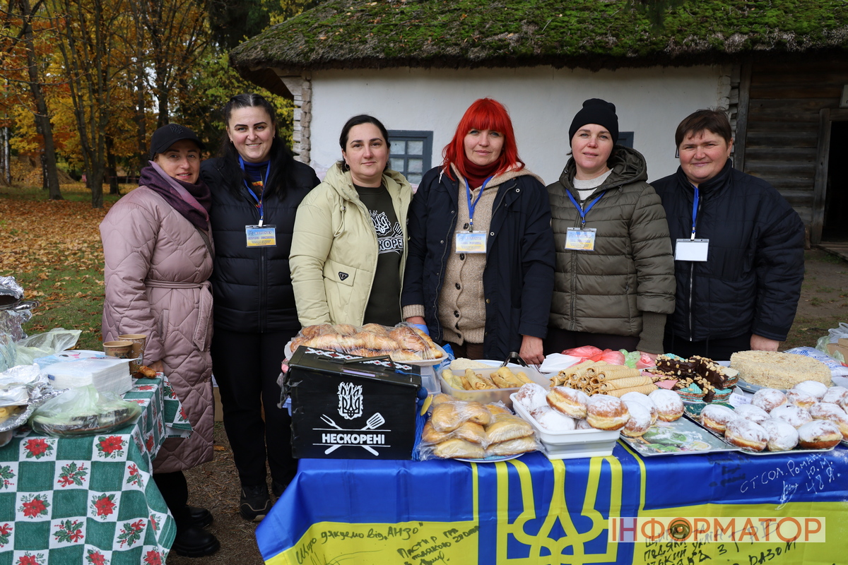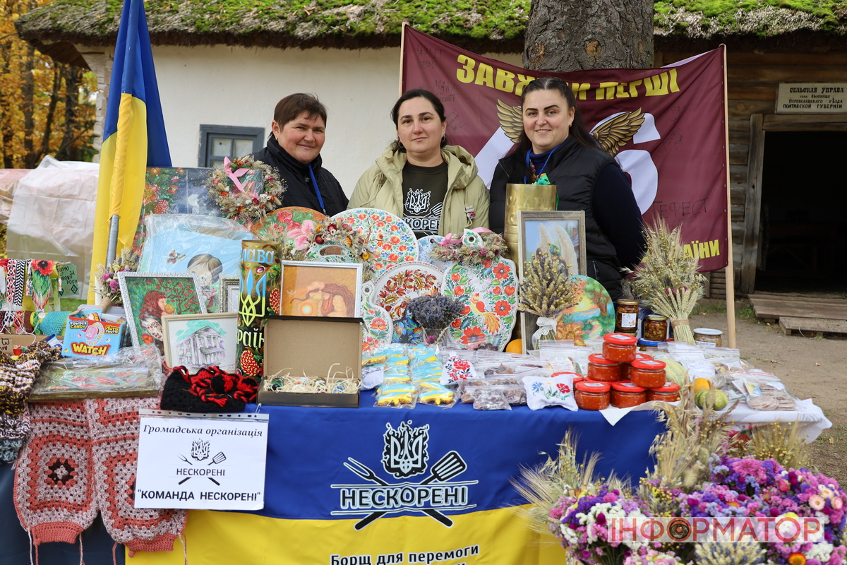 Попри похмуру погоду, прохолодний вітер і часом накрапаючий дощ, на Ярмарковій площі музею панувала тепла, дружня атмосфера. Відвідувачі прогулювалися між ятками, де продавали домашню випічку, гарячі страви, солодощі, а також різноманітні вироби ручної роботи – від вишитих хустинок до декоративних прикрас. Усе це можна було придбати, зробивши внесок у підтримку українських військових.
