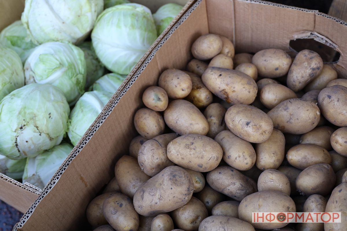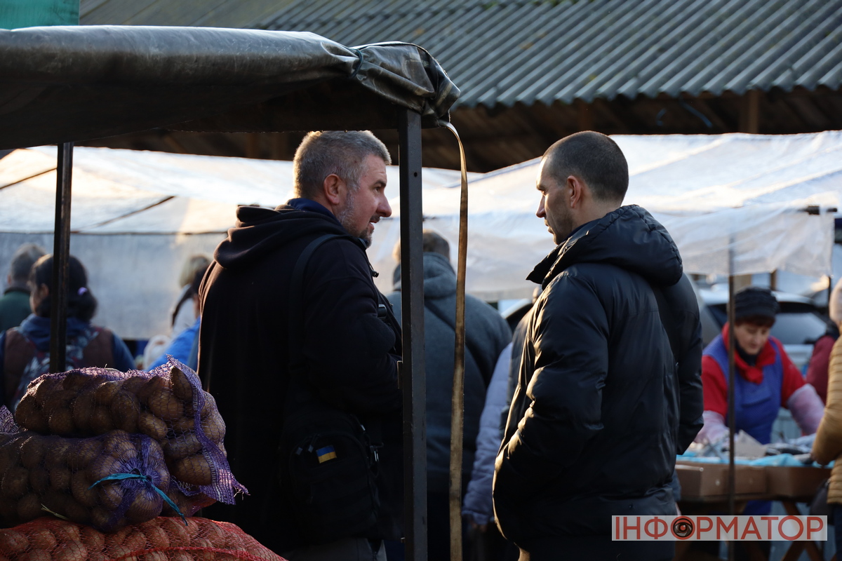 Сезон овочів на базарі вже добігає кінця. На прилавках ще можна було знайти помідори та перці з літніх врожаїв, але вони вже виглядали тьмяно. Натомість пропонували багато картоплі та капусти, часто у сітках. Ціни на картоплю становили 15-20 гривень за кілограм, а у сітках трохи дешевше – від 12 до 15 гривень за кілограм, що нагадувало оптову пропозицію. Капусту продавали за тією ж ціною – 15-20 гривень за кілограм і в сітках мала таку ж вартість. Також на базарі багато пропонували кашових гарбузів, ціна на них коливалася від 8 до 12 гривень за кілограм. Особливо популярною була посадкова цибуля, її продавали у великій кількості, ціна – від 75 до 150 гривень за кілограм.