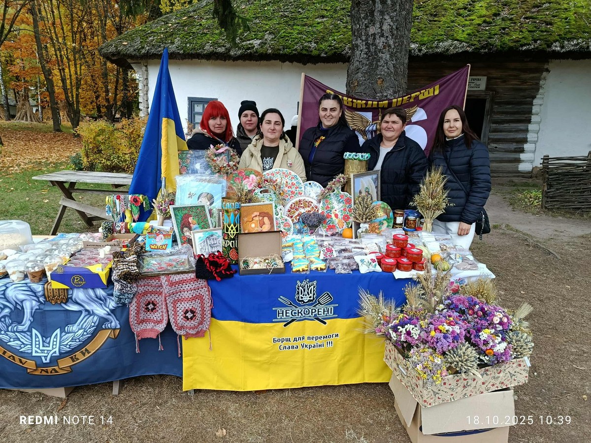 Також гості заходу могли придбати дідухи, букети із сухоцвітів, вироби, розписані петриківським розписом, різноманітні вироби і картини з бісеру. Анастасія Огієнко також провела для всіх охочих майстер-клас із петриківського розпису. Кожен, хто долучився, створив власний малюнок, який можна було забрати із собою.