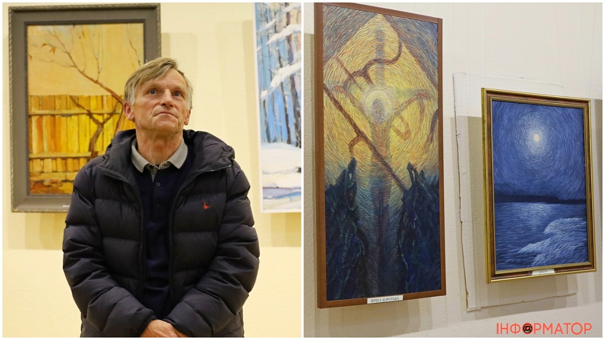 – Я постійно у творчому пошуку свого почерку, тому всі мої картини різнопланові та створені у різних стилях. Колись він у мене був, але я його згубив, ще коли навчався в університеті. Ця виставка зібрана зі всього, що залишилося. У мене було дуже багато робіт, ці – не тематичні, – розповів художник.