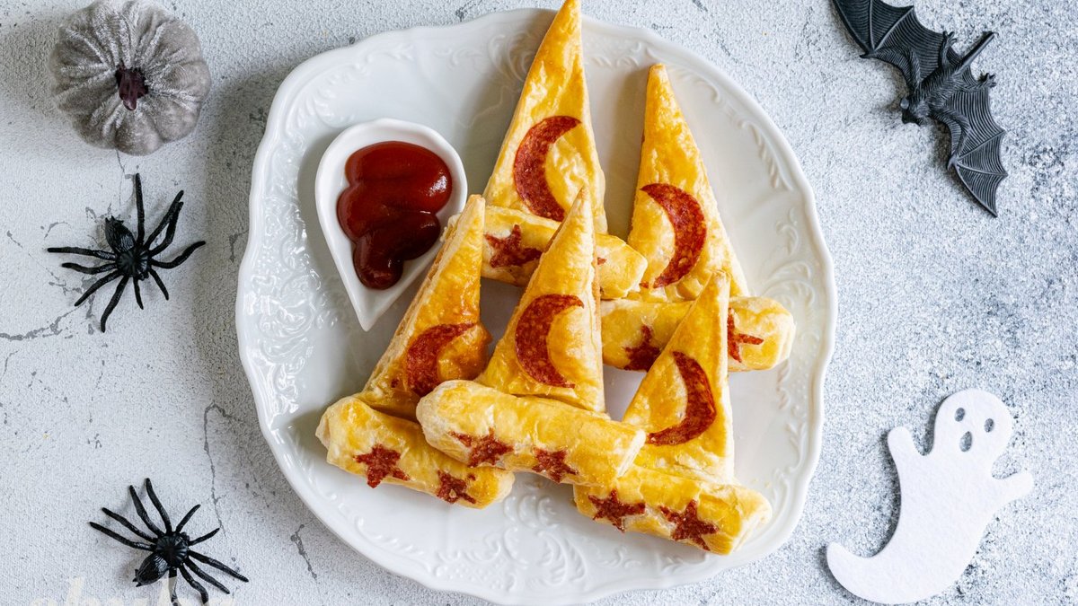 Закуска “Капелюх відьми” створена спеціально до Гелловіну – свята, коли їжа стає частиною декорацій. Золотисті, ароматні “капелюхи відьми” виглядають настільки ефектно, що прикрасять будь-який святковий стіл. Спробуйте приготувати.