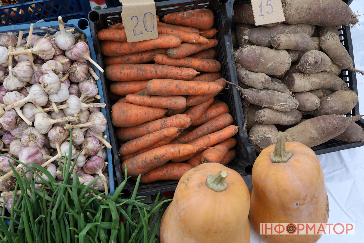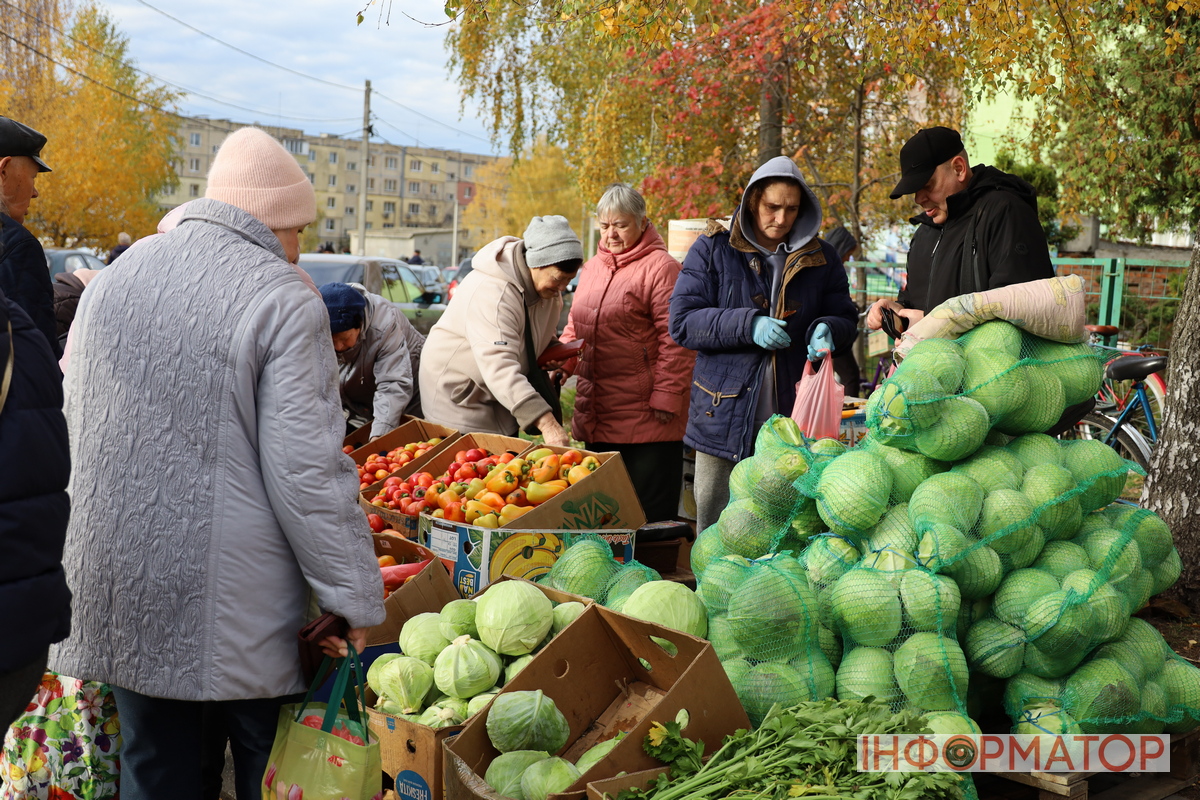 На овочевих прилавках цього тижня було доволі небагато продукції – сезон уже добігає кінця, тому вибір овочів помітно зменшився. Переважали капуста та картопля. Картоплю продавали по 15-20 гривень за кілограм, а в сітках трохи дешевше – від 12 до 15 гривень. Капуста мала подібну вартість – 15-20 гривень за кілограм і стільки ж у сітках. Помідорів і перцю було небагато – лише по кілька ящиків на деяких прилавках. Перець коштував від 50 до 70 гривень за кілограм, а помідори – 50-60 гривень. Морква та буряк цього тижня трохи знизилися в ціні: якщо раніше їх продавали в середньому по 20-25 гривень за кілограм, то тепер вартість становить 15-20 гривень. Попри обмежений вибір, овочеві ряди залишалися багатолюдними – люди активно закуповувалися на зиму.
