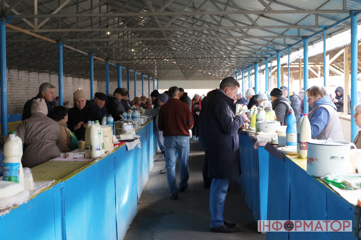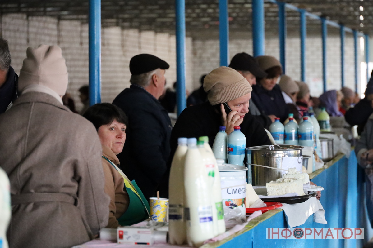 У молочних рядах було людно з самого ранку. Уже близько 8:30 у деяких продавців закінчилася сметана. Вони розповідали, що сьогодні її розкуповували чи не найшвидше. Вартість сметани залишалася стабільною – від 60 до 70 гривень за півлітрову банку. Молоко коров’яче продавали по 40-70 гривень за півторалітрову пляшку, залежно від жирності та того, домашнє воно чи привізне. Масло коштувало від 400 до 450 гривень за кілограм. Також на прилавках пропонували молозиво, яке коштувало від 100 гривень за півкіло. Покупці підходили з власними банками й пляшками, розпитували про свіжість продуктів та брали “з-під ранкової дійки”. Продавці ледве встигали наповнювати банки й віддавати решту. Курячі яйця коштували в середньому 65-80 гривень за десяток.