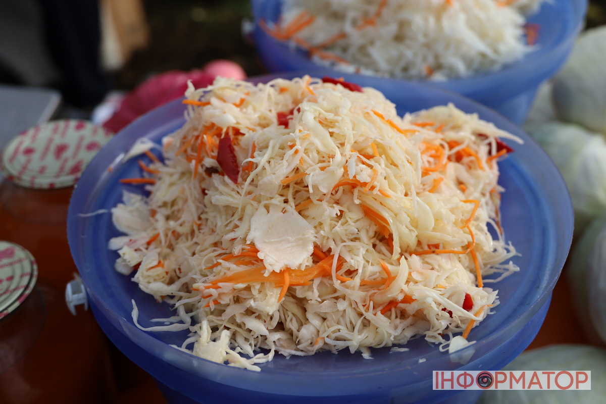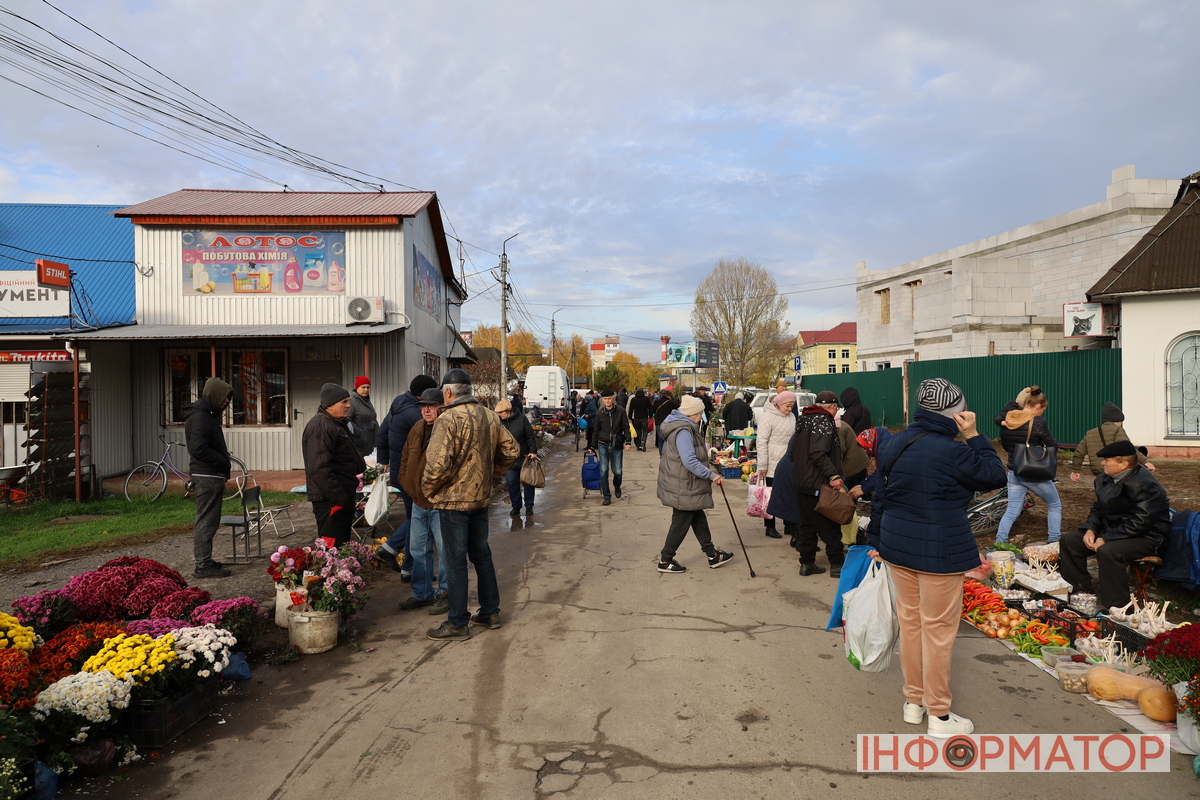 Біля кожної ятки стояли черги – переважно за капустою, яблуками чи картоплею. На прилавках продавали й горіхи по 80-100 гривень за кілограм. Особливо багато було грибів: лисички, білі, польські, опеньки та інші види приваблювали покупців різноманіттям свого вигляду. Огірків не було зовсім, лише подекуди залишилися помідори й перець. Окрім грибів, багато продавців пропонували свіжий мед – від 50 до 250 гривень за банку, залежно від розміру. У продажу ще можна було знайти саджанці дерев, кущів і квітів, які коштували в середньому по 150-200 гривень за один. Особливу увагу покупців привертали яскраві хризантеми – їх продавали від 50 до 250 гривень за кущик. А ще деякі продавці пропонували домашню квашену капусту, за ціною від 60-ти до 70-ти гривень за кілограм. Атмосфера базару була по-осінньому тепла й затишна. Інформатор традиційно розповідає про ціни на продукти та інше.