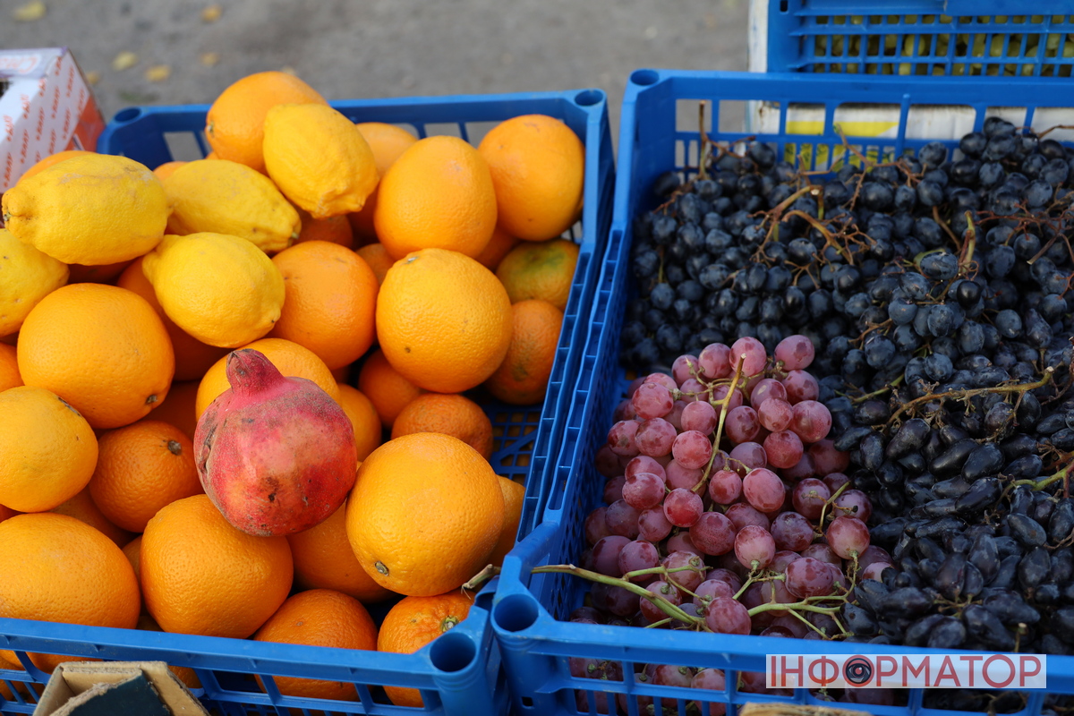 Сливи ще траплялися на прилавках, хоча вже небагато. Придбати їх можна було по 45-70 гривень за кілограм. Винограду цього разу було зовсім мало, а ціни на нього помітно відрізнялися – від 60 до 150 гривень. Осінні фрукти поступово поступаються місцем зимовим. На базарі вже з’явилися цитрусові. Лимони та апельсини продавали по 80-100 гривень за кілограм, а ківі коштувало близько 80-90 гривень. Не оминули уваги й хурму, яка тільки нещодавно з’явилася – по 70 гривень за кілограм.