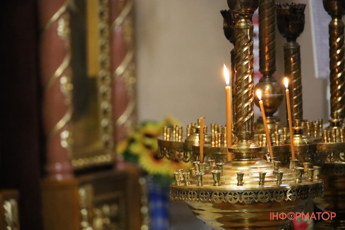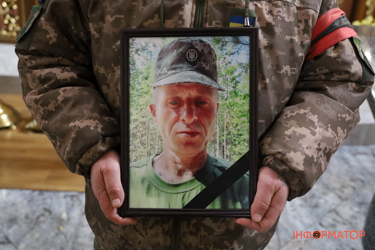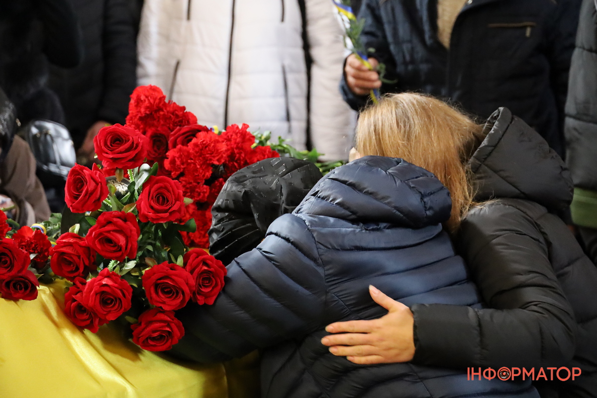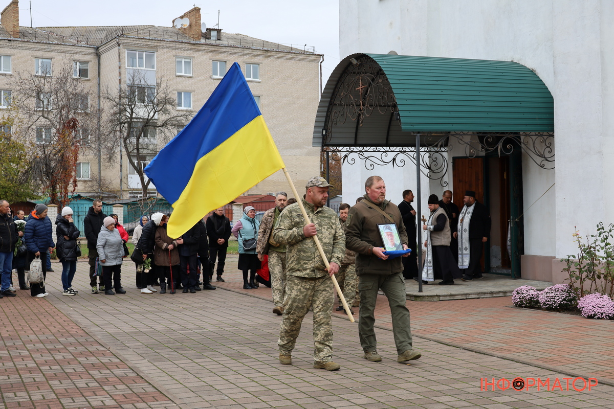 Заупокійну літургію провели у Храмі Воскресіння Христового. Там зібралося близько сотні людей: рідні, друзі, знайомі, однокласники, також прийшли й представники влади. Дружина та доньки військового сиділи разом та безупинно оплакували свого чоловіка та батька, притулялись чолом до домовини, вкритої блакитно-жовтим прапором.