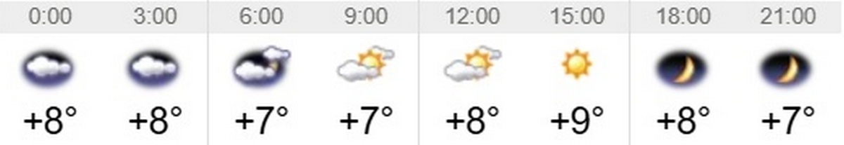 Швидкість вітру – 1-2 м/с. Вологість повітря коливатиметься між 67 та 99 відсотками протягом доби. Тривалість дня 7 листопада – 9 годин 26 хвилин. Завтра день буде на 4 хвилини коротшим, ніж сьогоднішній. Світанок настане о 6:54, а захід – о 16:20.