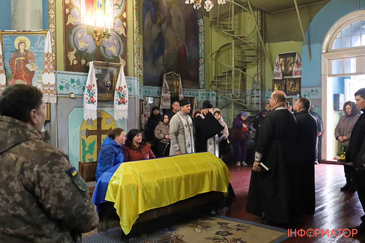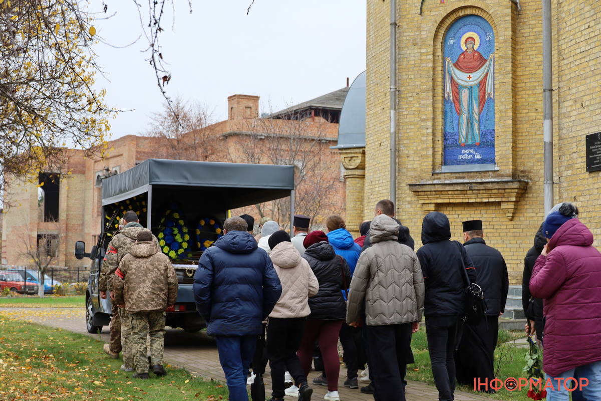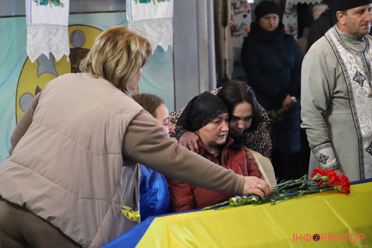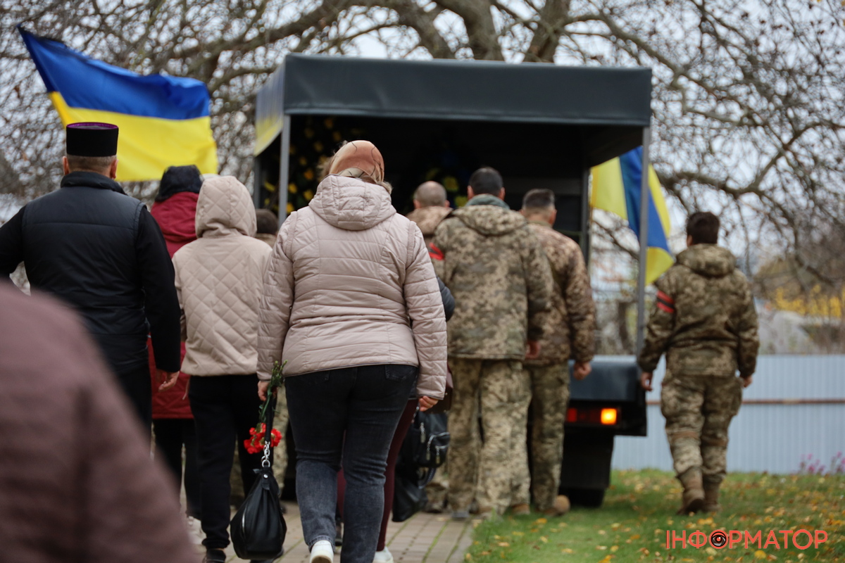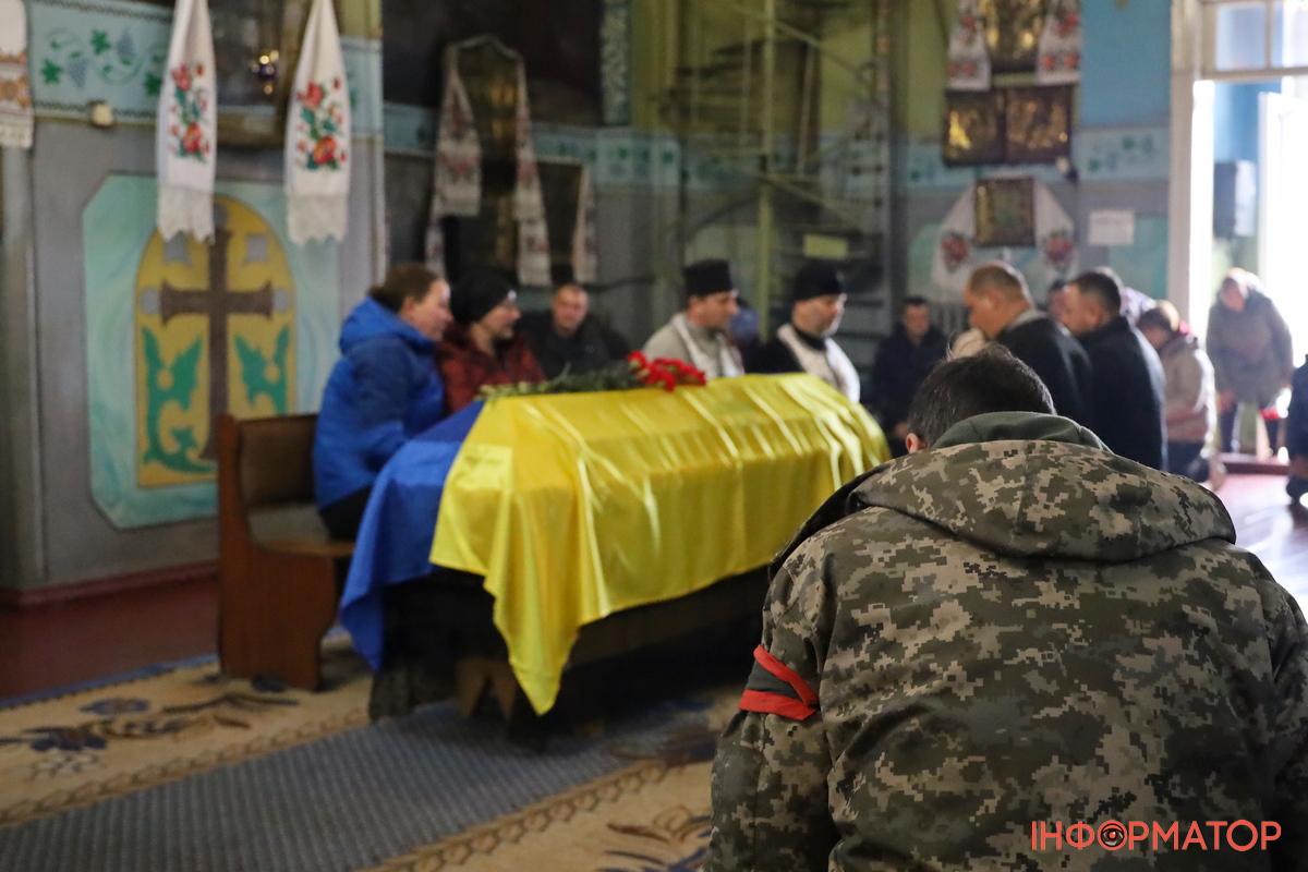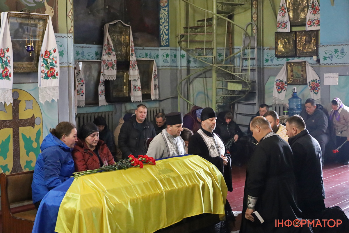 Пам’ять воїна вшанували стоячи на колінах. Після цього похоронний кортеж вирушив до села Пологи-Яненки, де біля родинного помешкання захисника провели коротку службу. Поховають воїна на місцевому кладовищі.
