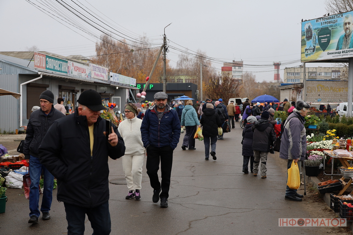 9 листопада у Переяславі ранок видався теплим і багатолюдним. На міському ринку вже з перших годин кипіло життя – люди неспішно розглядали товар, продавці жваво його пропонували. Асортимент цього дня був особливо різноманітним. На прилавках продавали саджанці дерев, кущів полуниці, малини та троянд, а також молоді пагінці соняшнику. Вартість саджанців коливалася від 40 до 250 гривень за кущик чи деревце. Поблизу можна було зустріти й пасічників: мед продавали по 50-250 гривень за банку, залежно від сорту. Поруч стояли продавці вина, які пригощали покупців напоєм власного виробництва, щоб ті могли оцінити його смак – півторалітрова пляшка коштувала близько 200 гривень. Серед усього цього розмаїття барвисто виглядали квіти: хризантеми, айстри та інші осінні красуні, що продавалися по 20-150 гривень за горщик. Інформатор традиційно розповідає про ціни на продукти та інше.