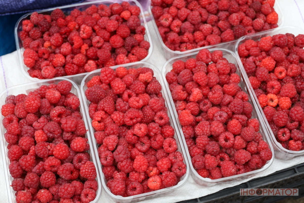 На фруктових прилавках цього тижня було чимало сезонних фруктів, але найбільше яблук. Вони користувалися особливою популярністю серед покупців. Асортимент був великий: можна було знайти як дрібніші, так і великі соковиті плоди різних сортів. Ціни на яблука варіювалися від 35 до 60 гривень за кілограм. Не менше уваги привертали й груші. Їх продавали по 45-100 гривень за кілограм, залежно від сорту та розміру. На прилавках ще траплялися сливи, хоча вже небагато – не сезон. Їхня вартість становила 45-70 гривень за кілограм. Винограду цього разу було зовсім мало, а ціни на нього помітно різнилися. Коштували від 60 до 150 гривень за кілограм. Продавали малину – її ціна була 200 гривень за кілограм. Продавчиння каже, що це сорт, який дає урожай аж до осені. Також дехто виставляв на продаж пучки калини по 15-20 гривень.