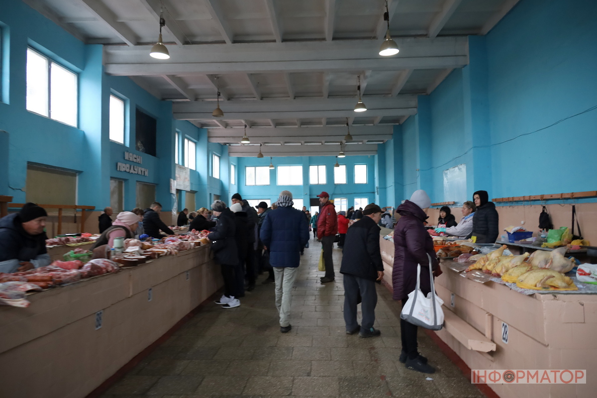 У м’ясному павільйоні цього тижня було багато продукції та покупців. Ціни на деякі види м’яса трохи змінились. Свинячі ребра зараз продають по 200-230 гривень за кілограм, тоді як минулого тижня вони коштували 200-250 гривень. Сало та підчеревина коштували від 350 до 400 гривень за кілограм. Курятина у ціні не змінилася: курячі тушки можна було знайти по 160-170 гривень за кілограм, а філе продавали приблизно по 130 гривень. Продавці зазначають, що попит на м’ясо залишається стабільним. Ціни на інше такі: