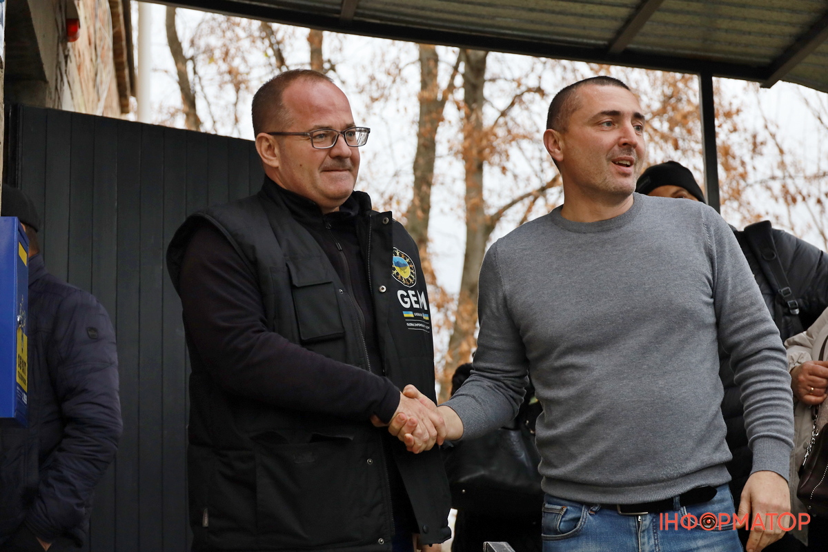 Координатор фонду GEM Олександр Капітоненко допомагає доставляти допомогу (ліворуч)