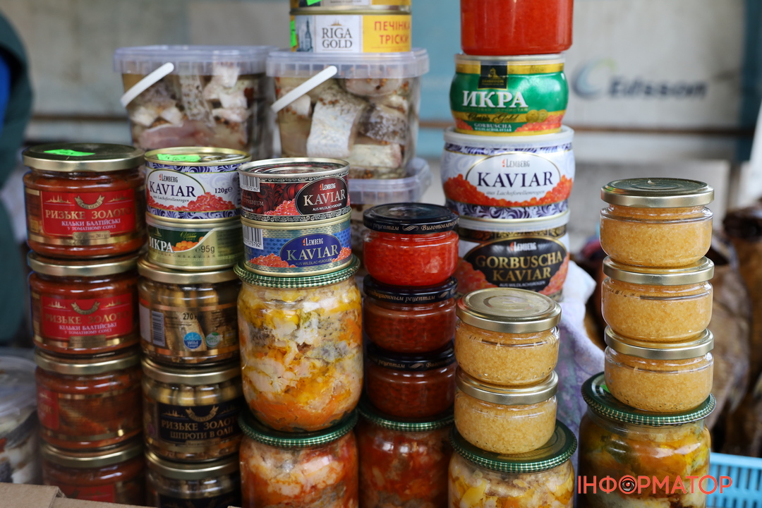 На рибних прилавках з’явилось оновлення. “Жовту” ікру щуки можна було купити за 400 гривень. Іншу ж ікру, зокрема кілограм ікри товстолоба чи “червоної” риби, можна було придбати від 150 до 350 гривень. Продавали також креветки і раки – 500 і 1500 гривень за кілограм відповідно. Ціни на іншу рибну продукцію незмінні: