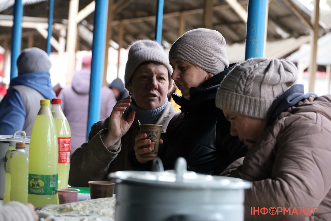 Люди зігрівались теплими напоями