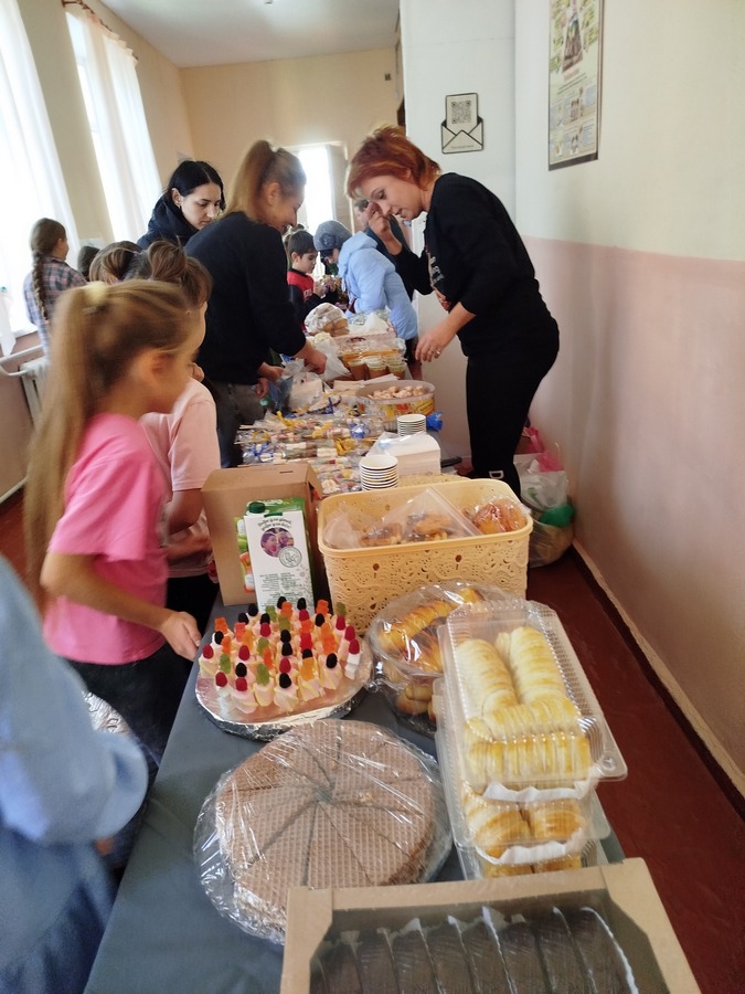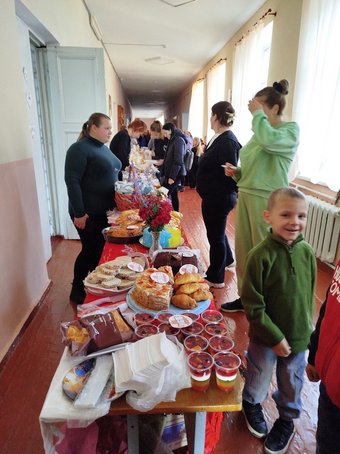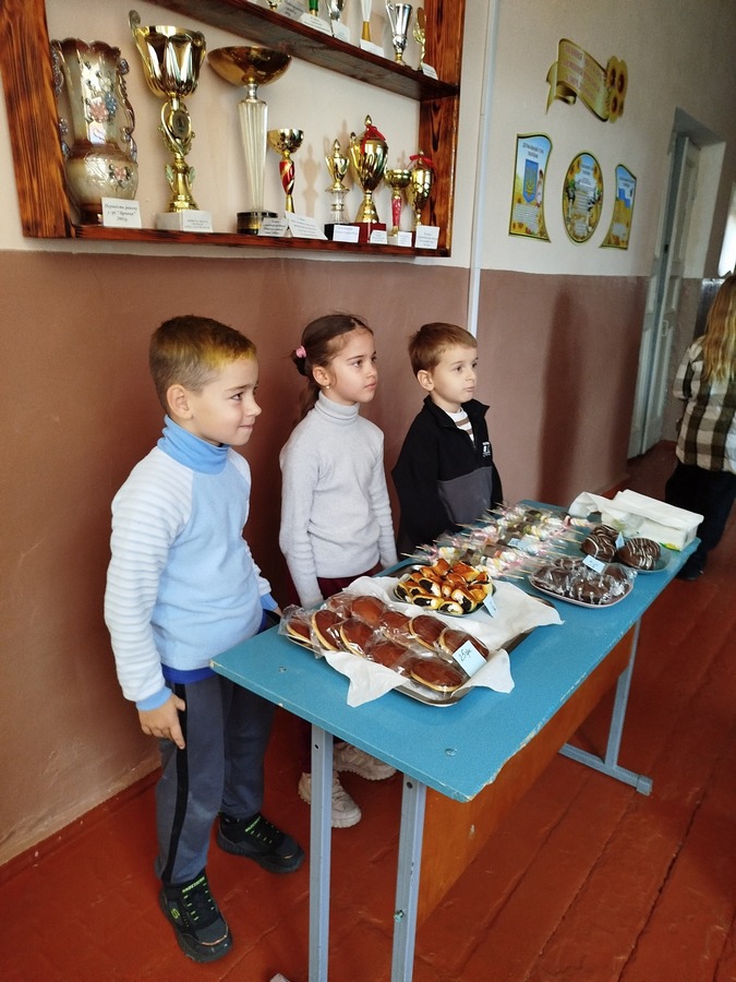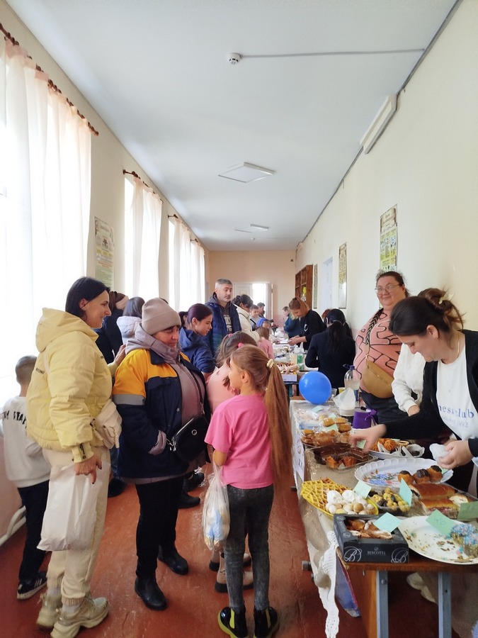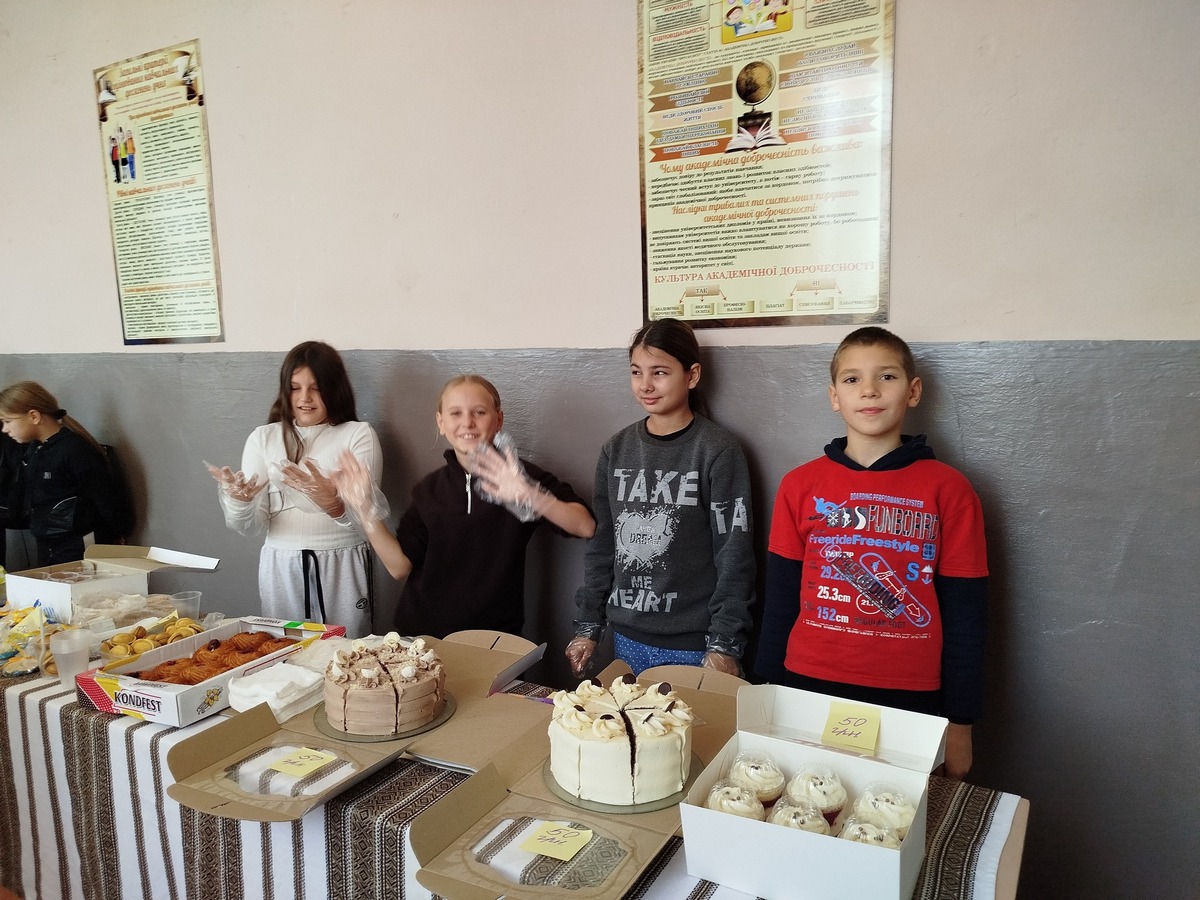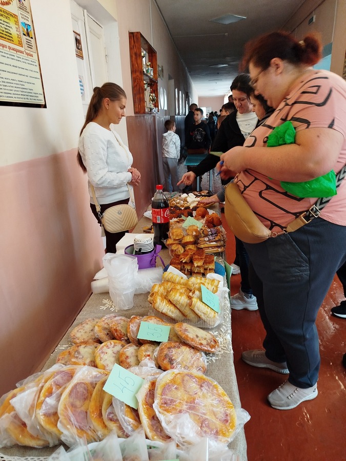 До ярмарку долучилися не тільки учні, батьки та працівники гімназії, а й жителі села. На столах пропонували пиріжки, більші, чебуреки, піцу, тістечка, торти, трубочки зі згущеним молоком, желе в стаканчиках, напої та інші смаколики. А для донатів поставили спеціальну скриньку.