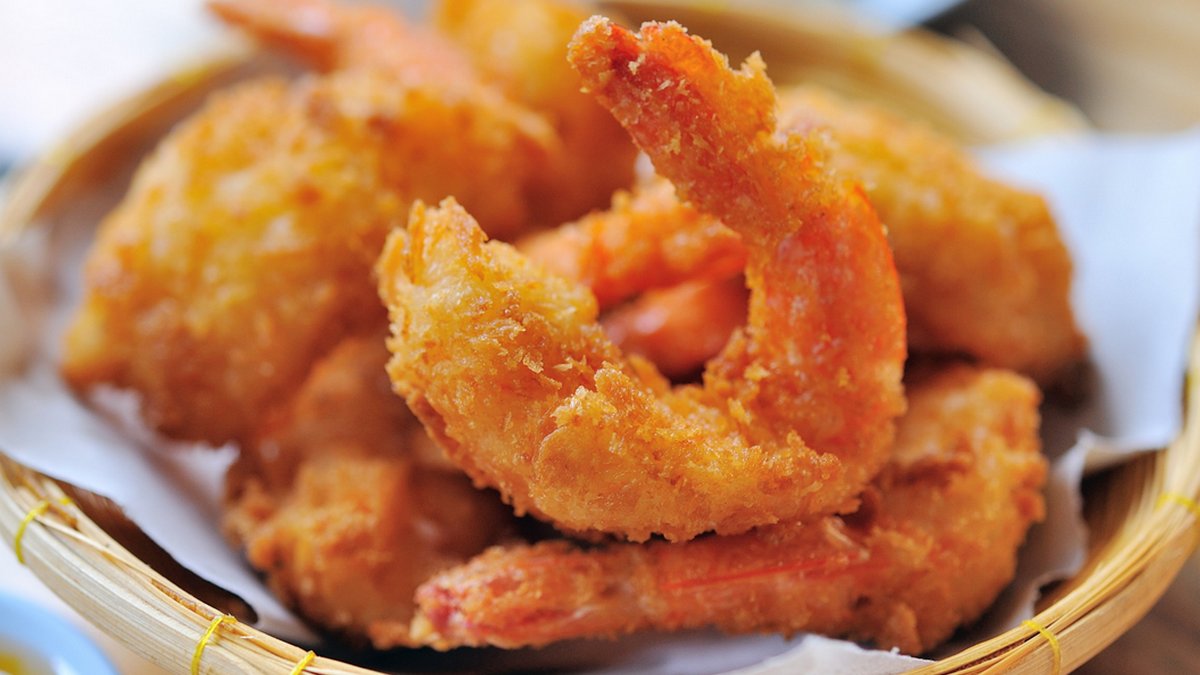 - Розігрійте олію в сковороді або фритюрі та смажте креветки партіями до золотистої скоринки.