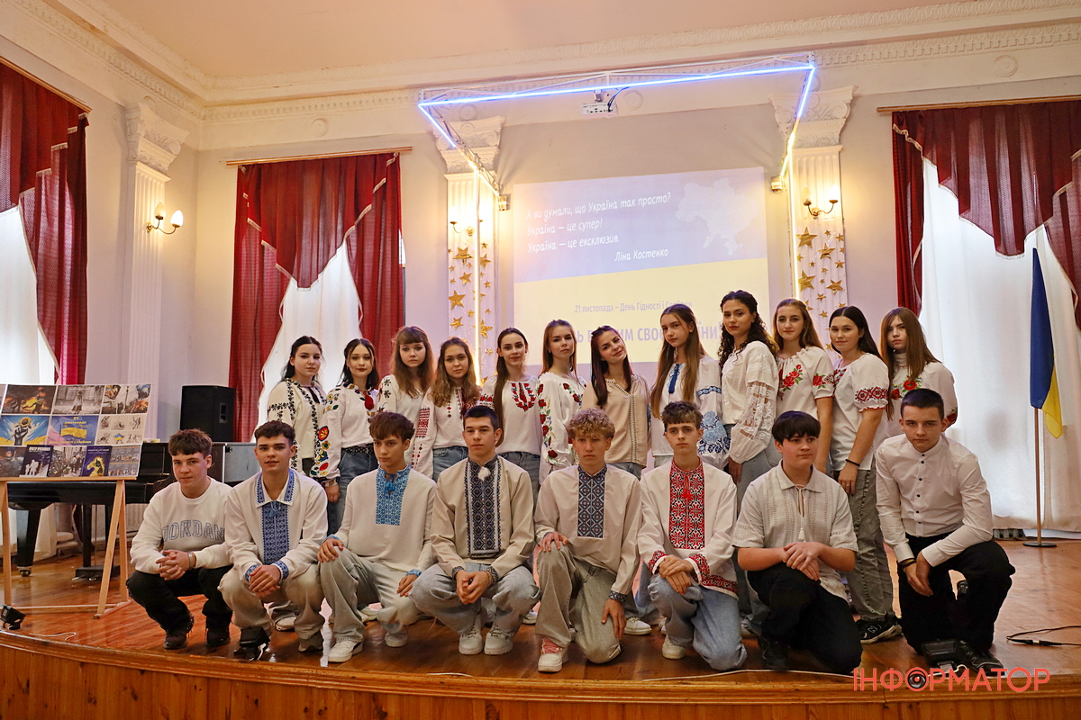 У актовій залі школи зібралися учні, вчителі та батьки. Ця подія стала не просто класичним шкільним святом, а прикладом патріотичної свідомості дітей, які за власної ініціативи підготували важливий захід, щоби розповісти про історичні події, які передували створенню Дня Гідності та Свободи.
