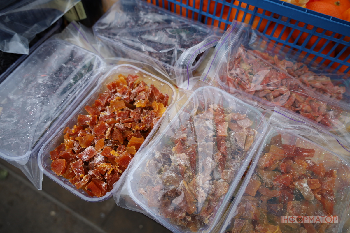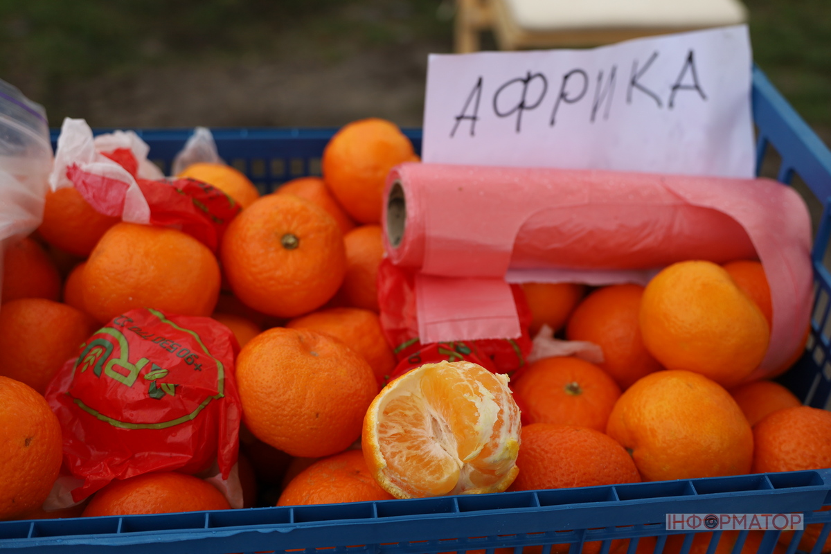 Продавців фруктів цього тижня на ринку було менше, ніж зазвичай. На прилавках переважали яблука – їх продавали по 40-70 гривень за кілограм залежно від сорту та розміру. Потраплялися й останні груші сезону: їхня ціна коливалася в межах 45-70 гривень за кілограм. Помітно побільшало цитрусових – яскраві апельсини, мандарини та грейпфрути привертали увагу оранжевими й жовтими кольорами серед стриманого осіннього асортименту. Переважно їх продавали оптовики. Вартість цитрусових була доступною. Їх пропонували від 45 до 70 гривень за кілограм. Атмосфера біля цих прилавків була жвавішою: покупці зупинялися частіше, роздивлялися, порівнювали та обирали найкраще до свого кошика. Ціни на інші фрукти були такі: