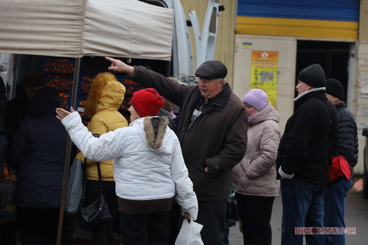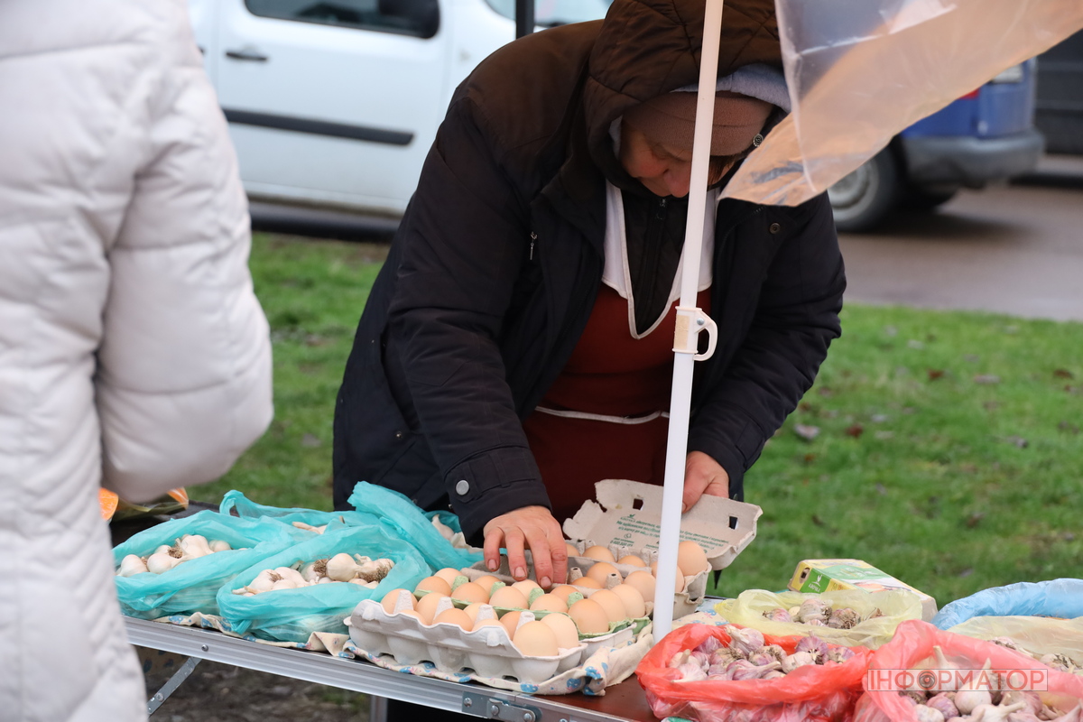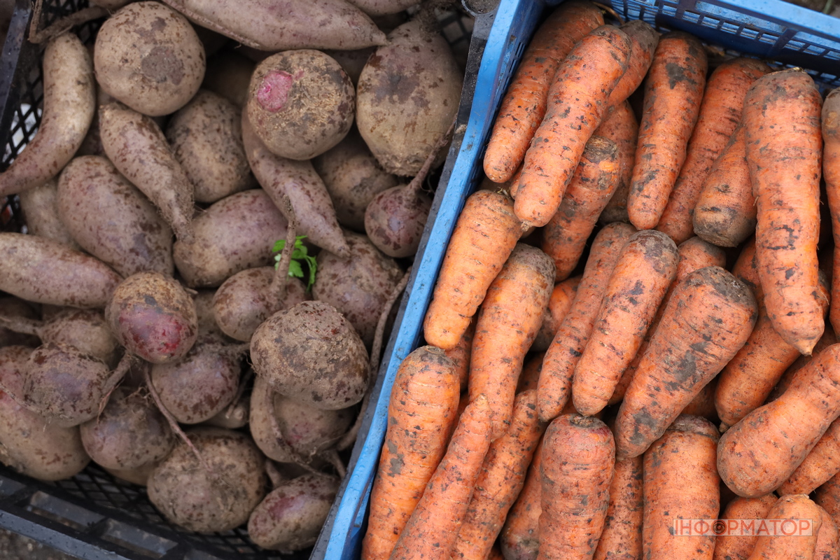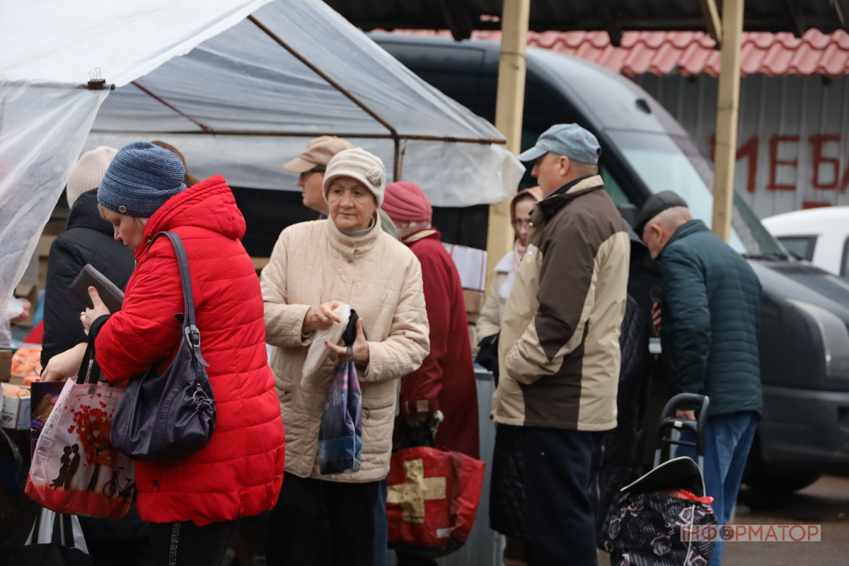 Проходячи повз овочеві ряди, можна було помітити, що асортимент суттєво зменшився. На прилавках залишилися переважно базові овочі: буряки, картопля, морква, цибуля та капуста. Подекуди траплявся перець, але його вигляд уже відрізнявся від літнього – плоди були менші та тьмяніші. Такою ж непоказною була й зелень, що цілком зрозуміло для кінця осені, коли до зими лишається близько тижня. Картоплю та капусту продавали переважно в сітках. Як зазначали продавці, так купувати вигідніше, бо вистачає на тривалий час. Можна було зустріти й гриби, здебільшого “польські”. Їхня ціна коливалася від 150 до 200 гривень за кілограм. Ціни на інші овочі такі: