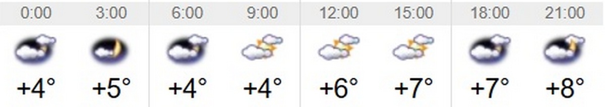 Швидкість вітру – 3-6 м/с. Вологість повітря коливатиметься між 76 та 87 відсотками протягом доби. Тривалість дня 25 листопада – 8 годин 35 хвилин. Завтра день буде на 2 хвилини коротшим, ніж сьогоднішній. Світанок настане о 7:23, а захід – о 15:58.