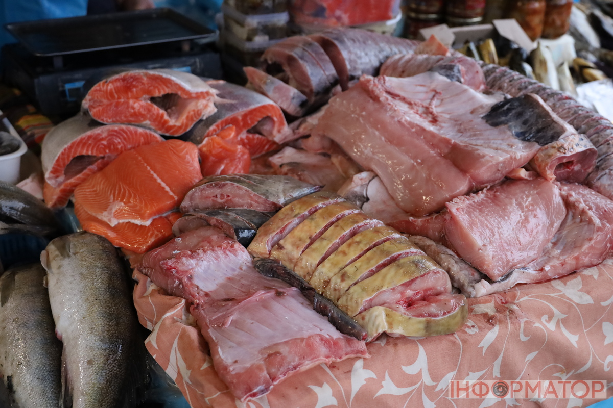 Рибні прилавки цього тижня були повними, а ціни залишалися сталими. Проте тепер до асортименту додався амур, якого можна було купити по 130 гривень за кілограм. Ціни на інше такі: