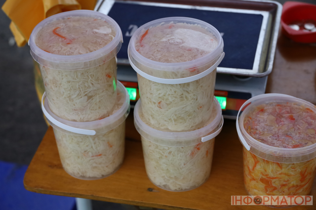 На овочевих прилавках найбільше було картоплі та капусти. Картоплю продавали по 15-25 гривень за кілограм, а капуста подешевшала – її можна було купити по 6-10 гривень за кілограм (тиждень тому була по 10-20). Продавали і квашену, баночку можна було купити за 60 гривень. Інших овочів стає очікувано дедалі менше. Ціни на них такі: