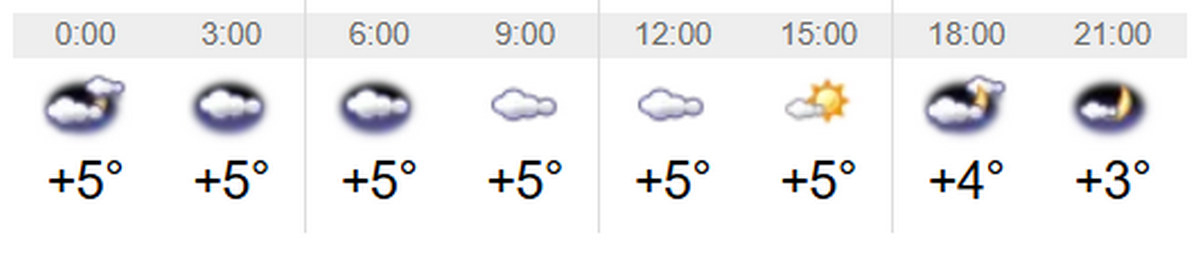 Швидкість вітру – 3-4 м/с. Вологість повітря коливатиметься між 70 та 87 відсотками протягом доби. Тривалість дня 5 грудня – 8 годин 16 хвилин. Завтра день буде на 2 хвилину коротшим, ніж сьогоднішній. Світанок настане о 7:36, а захід – о 15:52.