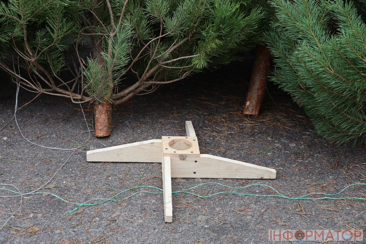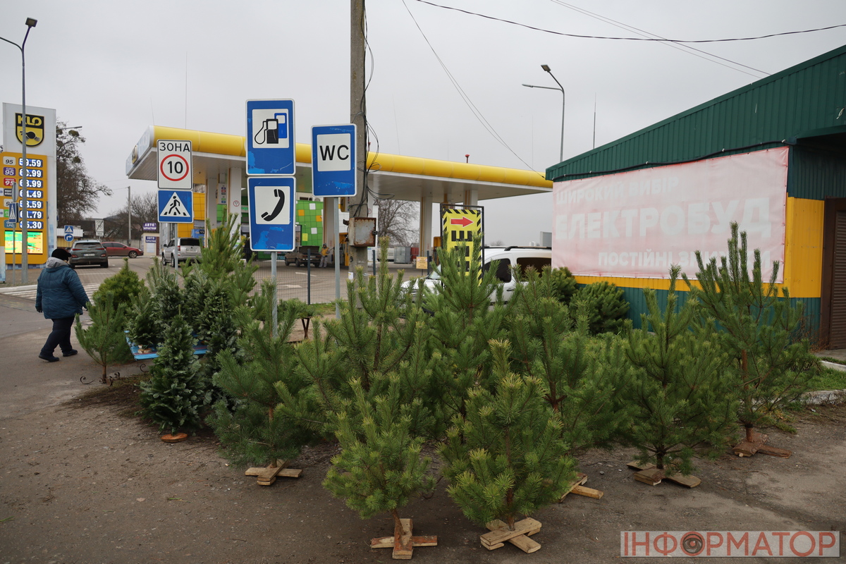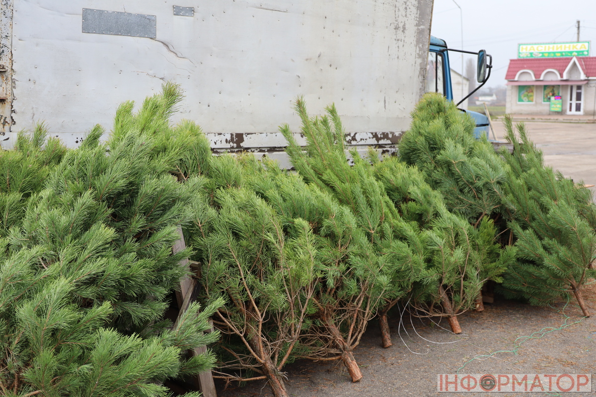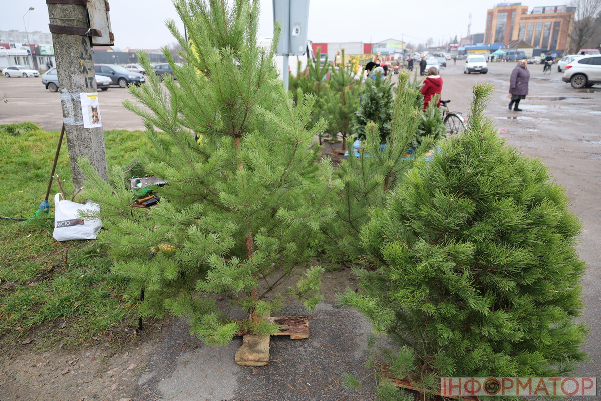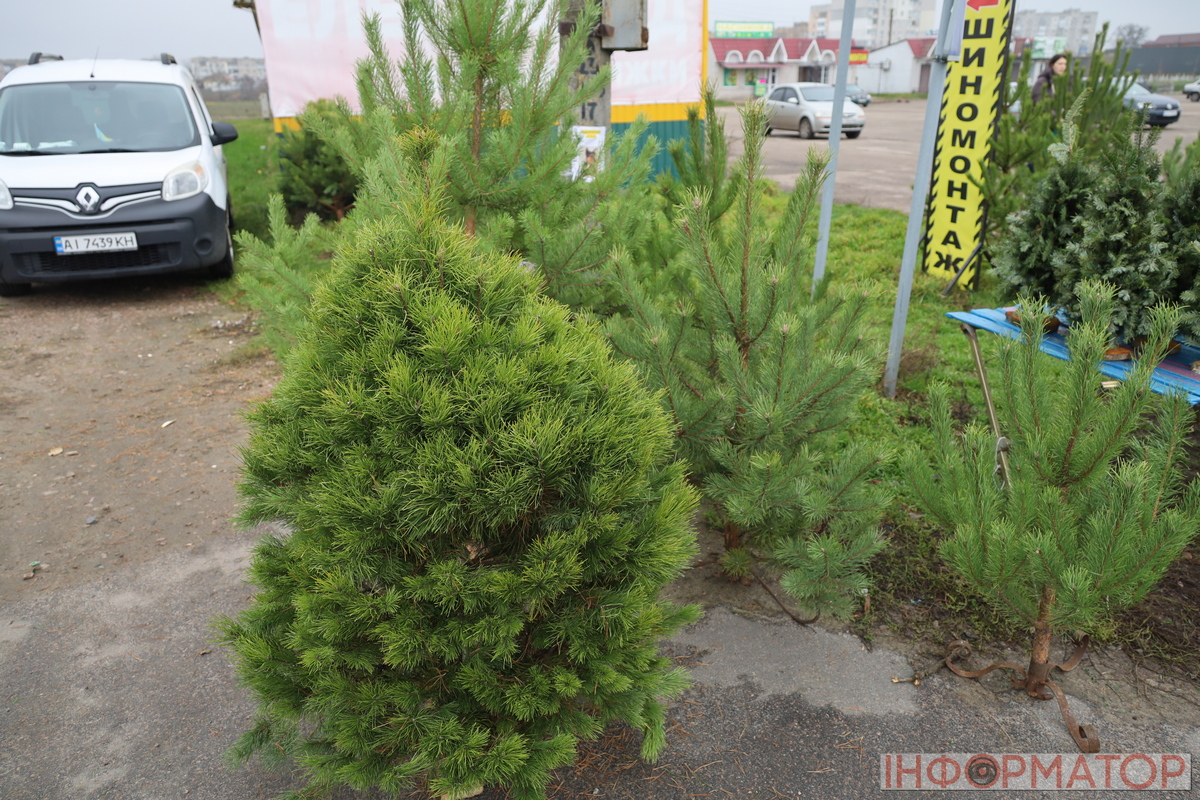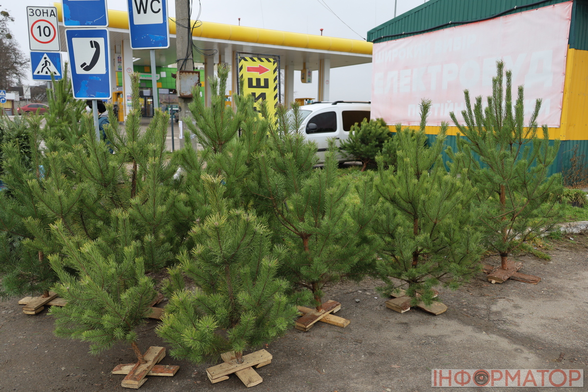 “Сьогодні перший день. Поки люди не купують, лише цікавляться цінами. Ялинки цьогоріч привезені з Прилук. Я ФОП, тож є всі необхідні офіційні документи для продажу”, – сказав Микола та додав, що після купівлі кожну ялинку загортає в сітку для легшого транспортування.
