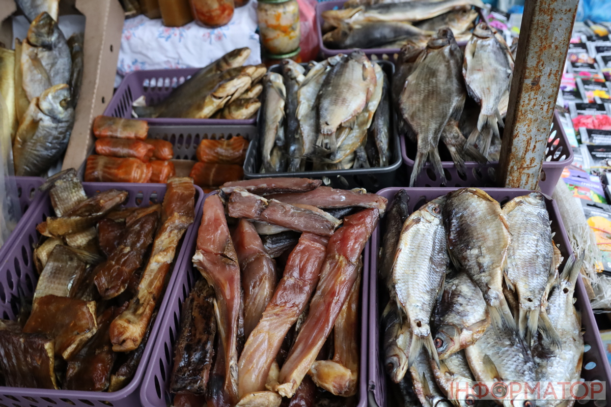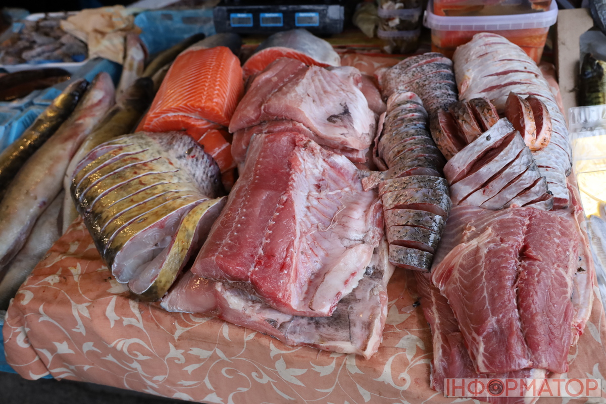 Рибні прилавки цього тижня були навіть повнішими, ніж раніше, а ціни залишалися приблизно такими ж. В асортименті були креветки по 430 гривень за кілограм, скумбрія – по 270, мойва – по 200, філе сома – по 160, хек – по 170 та камбала – по 250 гривень. Ціни на інше такі: