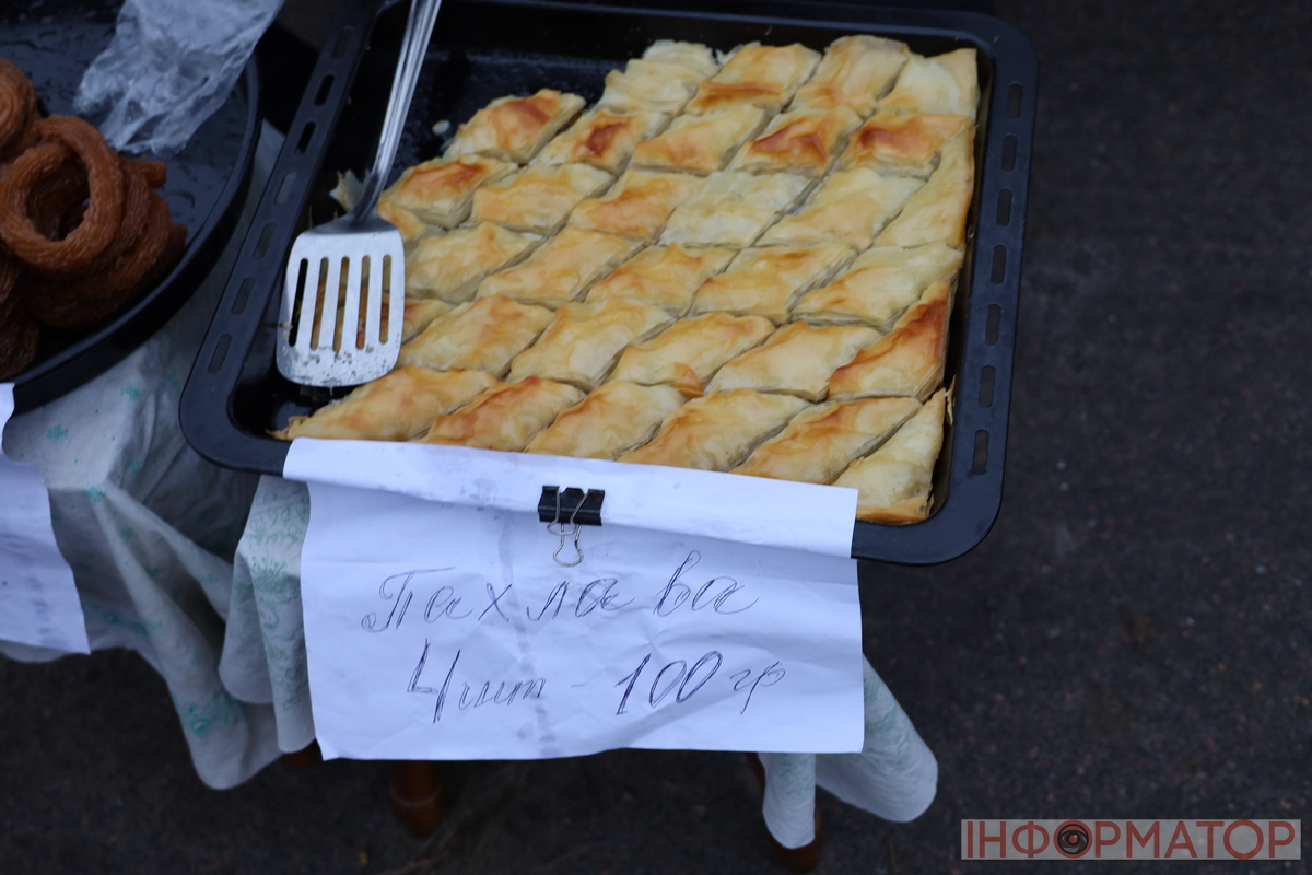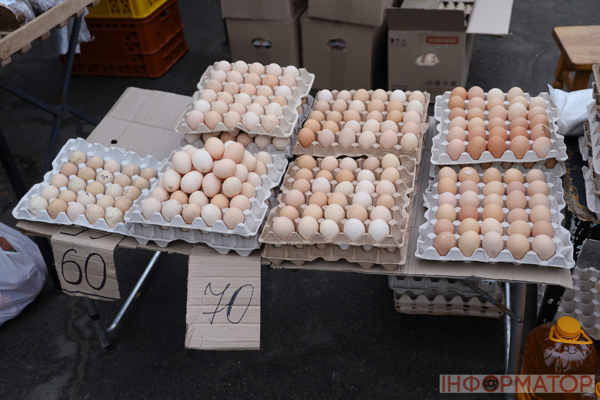 Поблизу молочних рядів можна було купити пахлаву за ціною 25 гривень за штуку. Курячі яйця продавали у багатьох місцях, купити їх можна було по 60-70 гривень за десяток.