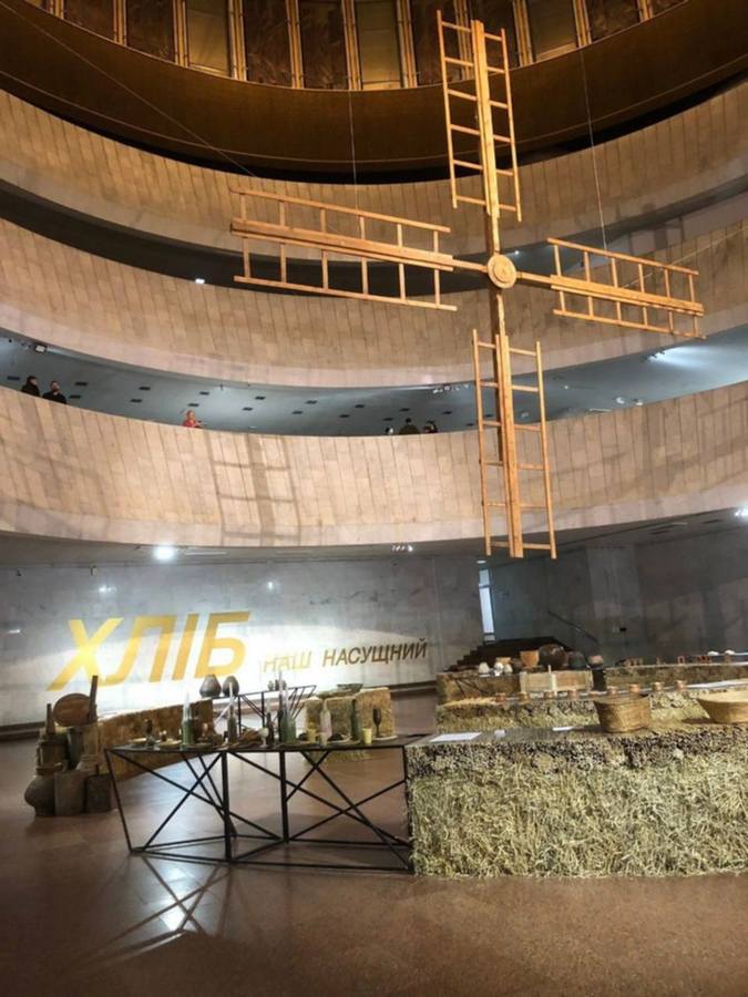 Виставку розмістили на двох поверхах центру. На першому поверсі експозиція охоплює зали “Пам’ять”, “Ботаніка” та “Шлях”, а на другому – “Обряд”, “Паляниці” та “Піч”. В атріумі представили розділ “Символ”, центральним елементом якого став вітряк із переяславського музею. Це – реконструкція крил вітряка із села Мазінки – останнього вцілілого з 15 вітряків, збудованого на початку 19 століття. Його крила виготовила бригада реставраторів заповідника за збереженими фрагментами оригінальної конструкції.
