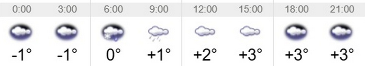 У Переяславі йтиме мокрий сніг. Мінімальна температура – 1 градус морозу.