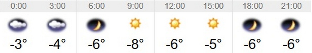 У середу, 24 грудня, у Переяславі буде сонячно. Мінімальна температура повітря буде вранці – 8 градусів морозу. Максимальна вночі – 3 градуси нижче нуля. Про це повідомляє Інформатор, посилаючись на sinoptіk.