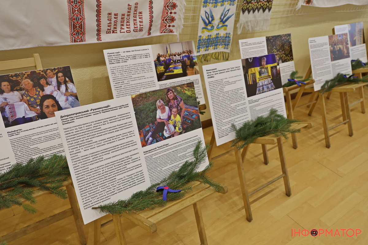 Всеукраїнська акція “Рушник надії” об’єднала родини військовополонених та безвісти зниклих захисників зі всіх регіонів України. Ініціаторами акції стали громадські організації “Народжені вільними” та “Жінки роду”. Її мета – не лише підтримка родин, які щодня живуть в очікуванні звістки про своїх рідних, а й збереження національної пам’яті через традиційне українське мистецтво – вишивку. Тож цього дня на відкриття виставки завітало багато гостей: майстрині, військові, жителі міста, зокрема й ті, хто долучився до її створення.