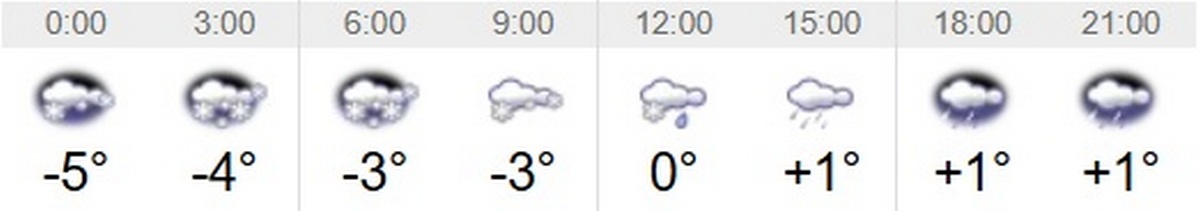 У вівторок, 6 січня, у Переяславі буде хмарно. Із ночі й до обіду йтиме сніг, який після обіду зміниться мокрим снігом та дощем. Опади – 7 мм. Мінімальна температура повітря буде вночі – 5 градусів морозу. Максимальна по обіді – 1 градус тепла. Про це повідомляє Інформатор, посилаючись на sinoptіk.