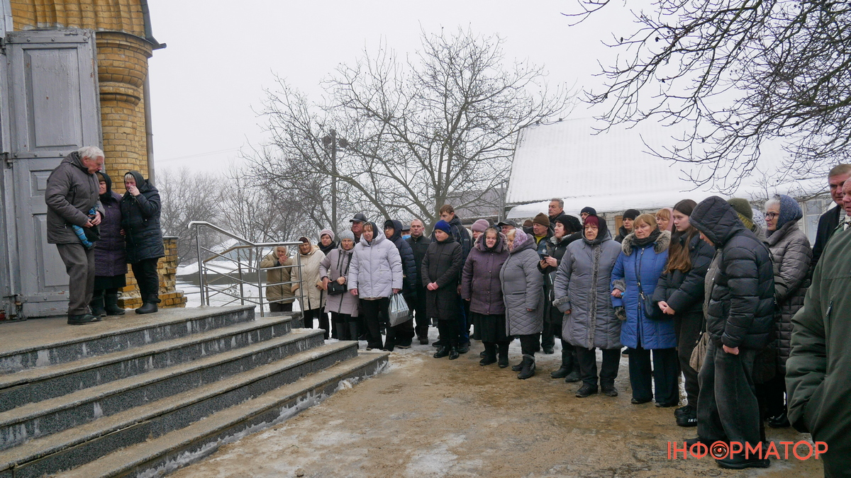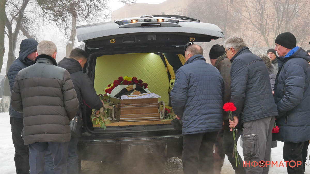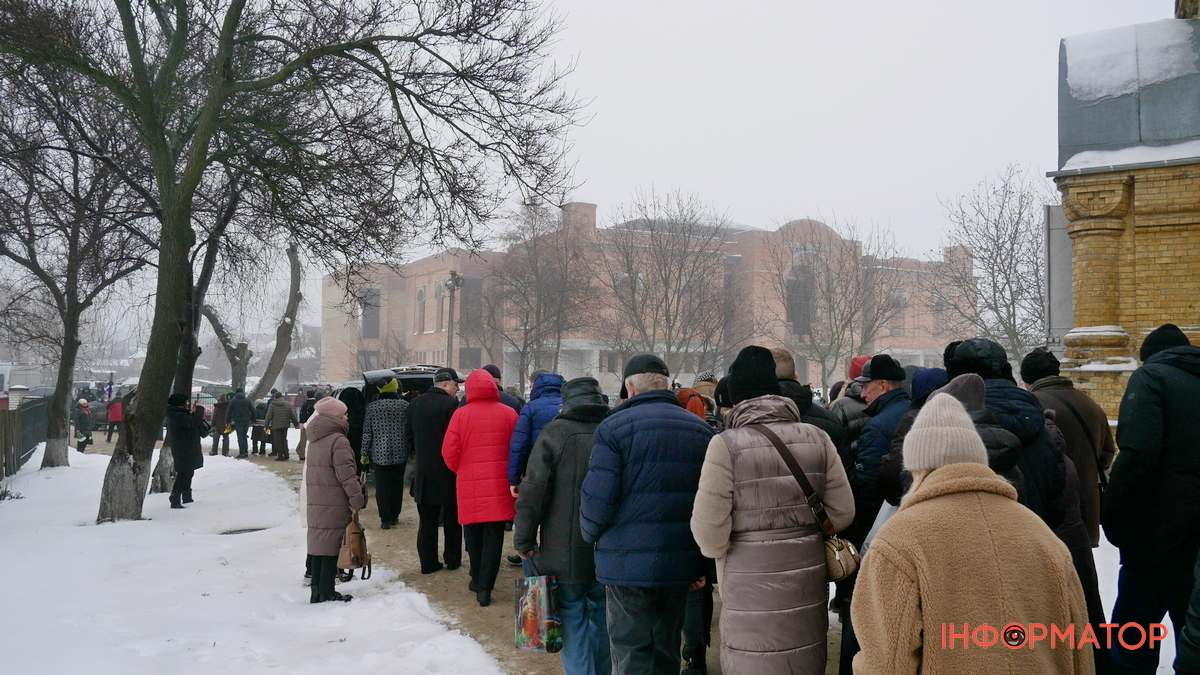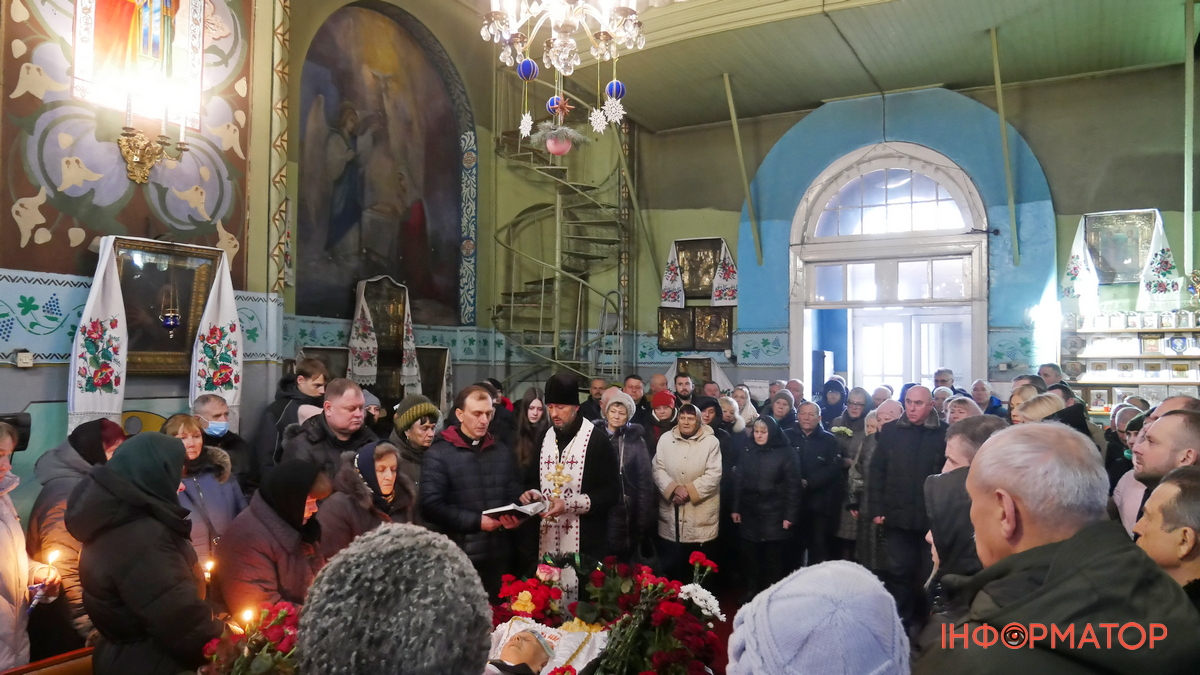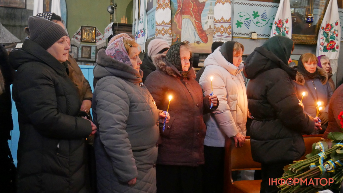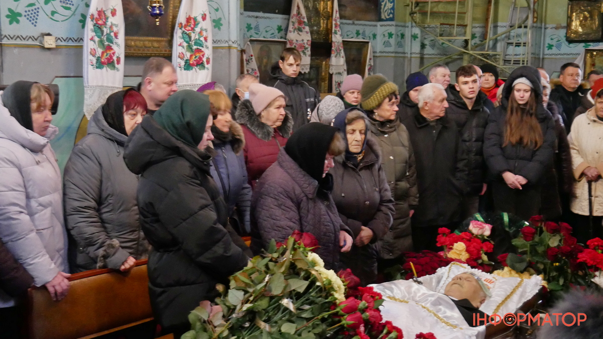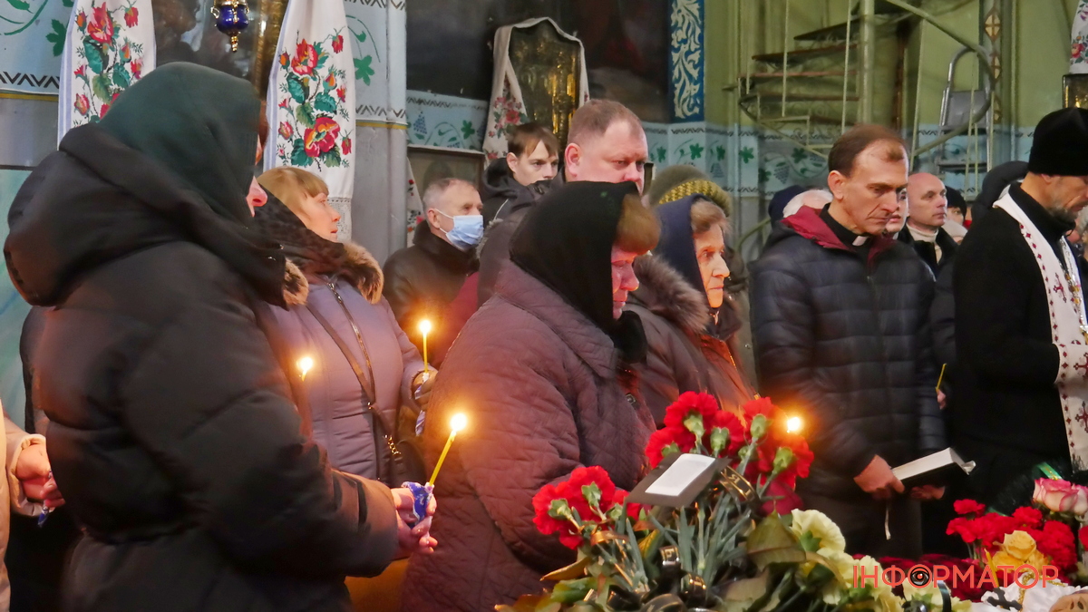 Після цього домовину винесли з храму, біля якого зібралося навіть більше людей, ніж було всередині. Присутні поклали до неї квіти і процесія рушила на Андрушівське кладовище.