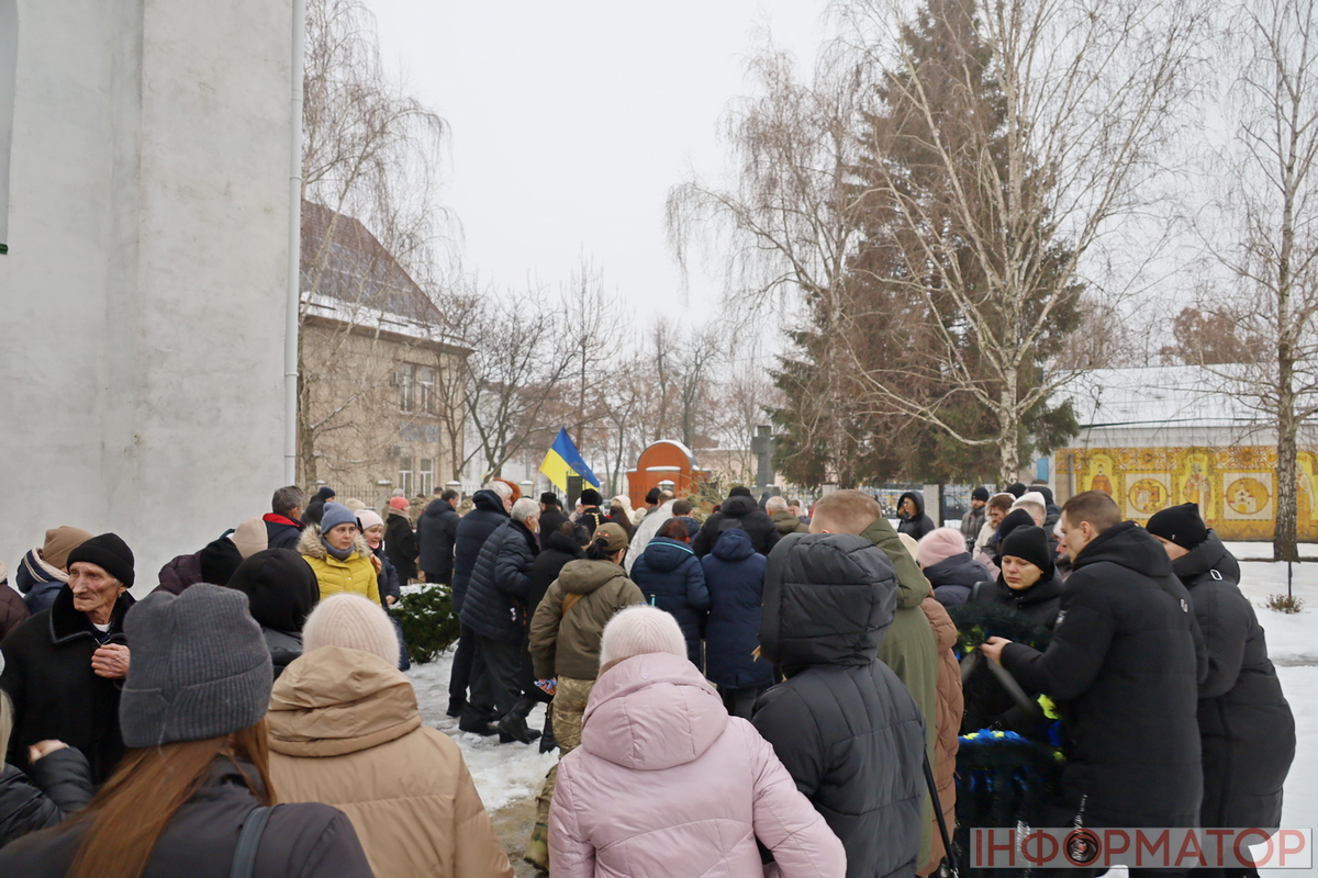 На прощання із захисником у Храмі Воскресіння Христового зібралось близько сотні людей, серед яких близькі, родичі, побратими та просто небайдужі. У воїна залишилась мама, сестра та 10-річна донечка. На літургійній церемонії був і міський голова Переяслава Вячеслав Саулко.