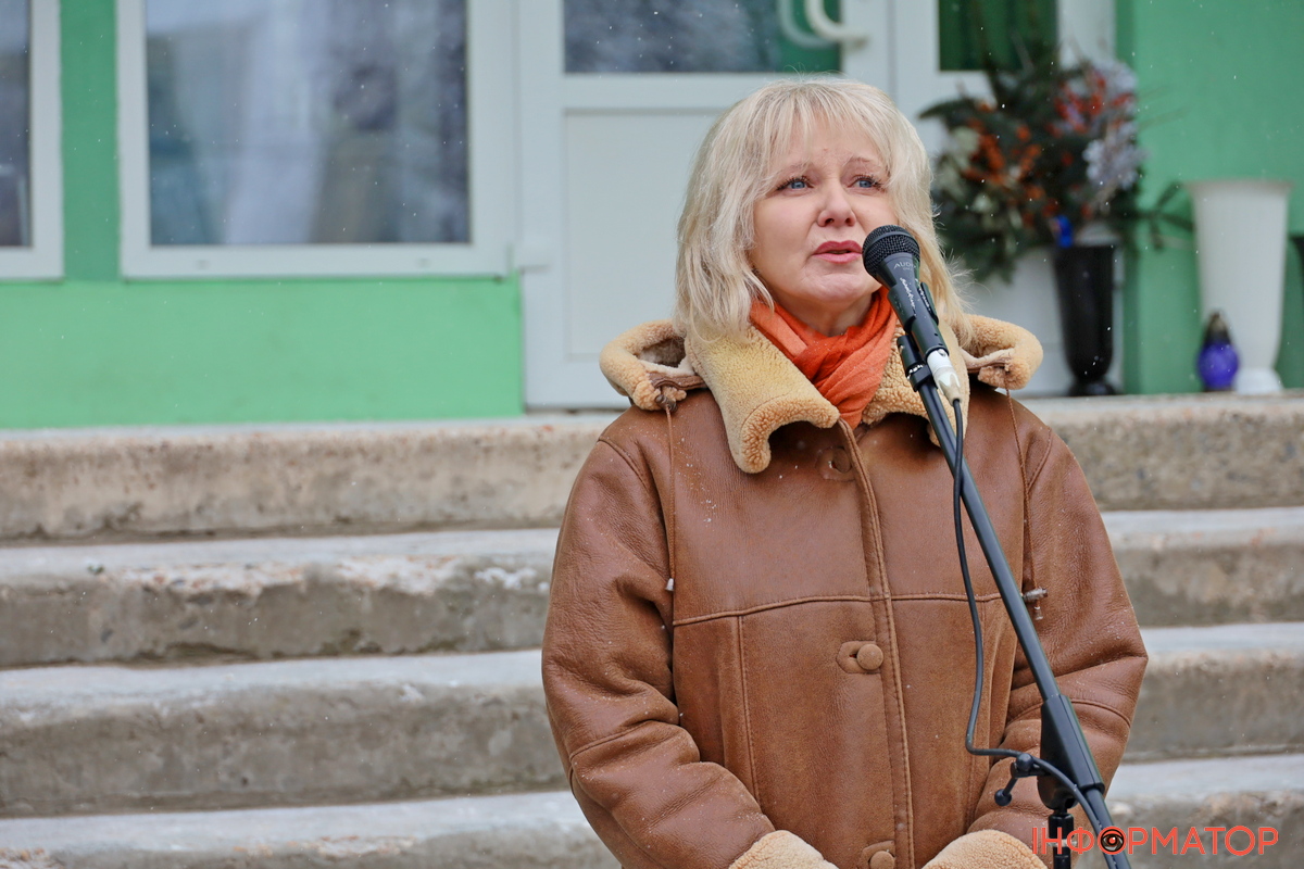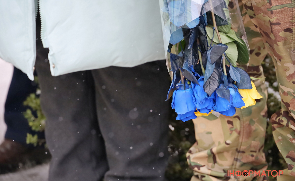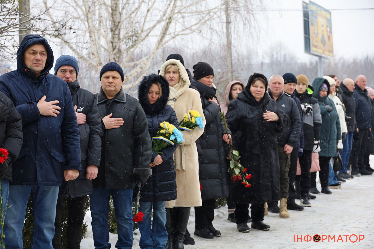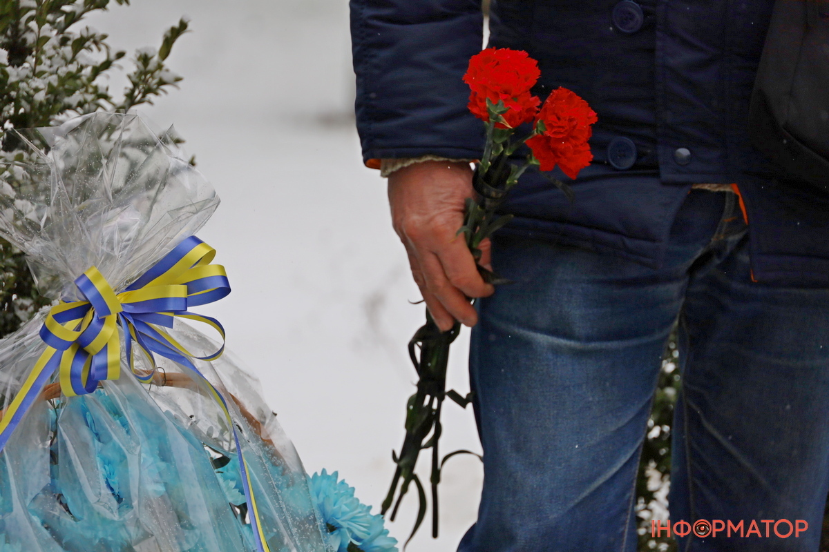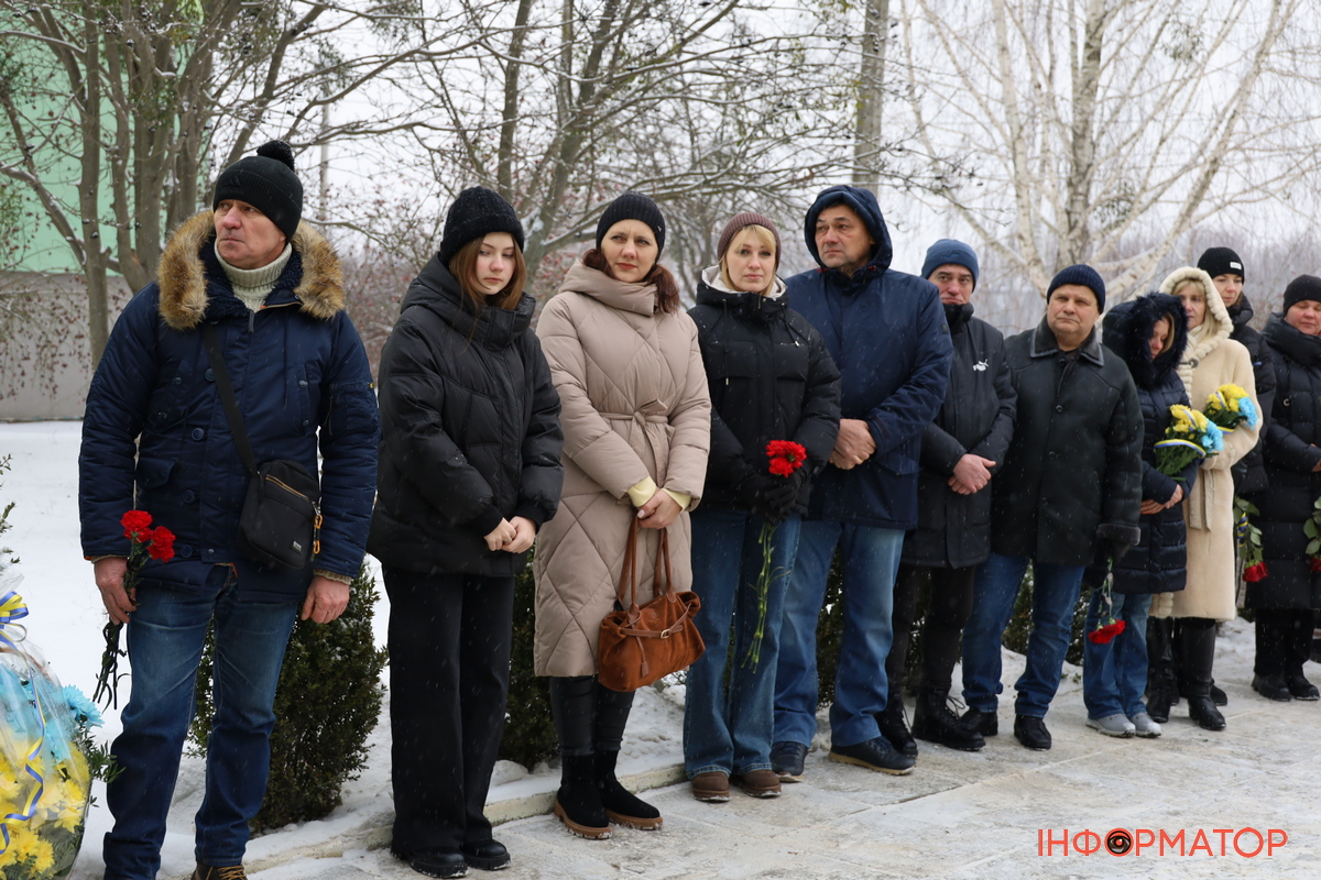 Шлях до шкільної алеї вкривав сніг, який цього ранку падав із неба безперервно. Біля вхідних воріт люди зустрічалися та обмінювалися сумними обіймами з мамою загиблого захисника Людмилою.