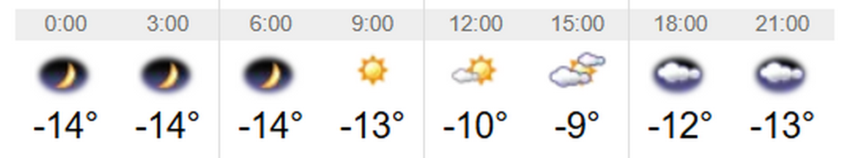 У неділю, 18 січня, у Переяславі буде переважно сонячно. Опадів синоптики не прогнозують. Мінімальна температура повітря буде вночі та вранці – 14 градусів морозу. Максимальна вдень – 9 градусів нижче нуля. Про це повідомляє Інформатор, посилаючись на sinoptіk.