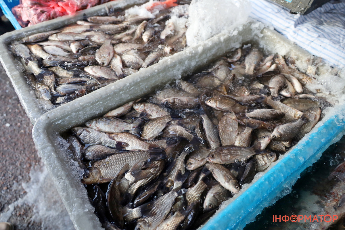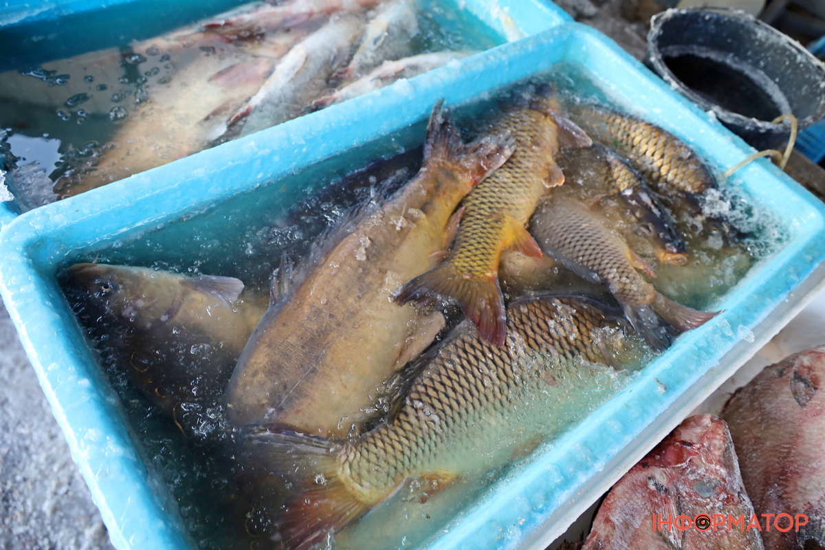 Велику та малу рибу розбирали дуже активно та швидко. Біля цієї локації, напевно, було найбільше людей, і кількість бажаючих протягом часу не зменшувалася. Особливо цікавилися свіжою, проте черги були й до прилавків із замороженою. Серед живої найбільший попит був на коропи та карасі, які дещо подорожчали, в середньому на 10 гривень. Із замороженої віддавали перевагу хеку, скумбрії і товстолобу. Загалом ціни зараз такі: