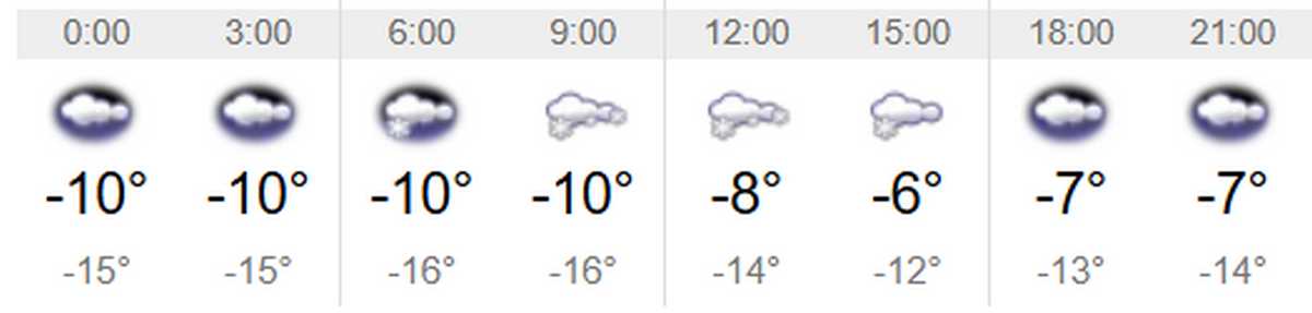 У неділю, 25 січня, у Переяславі буде хмарно. Протягом дня йтиме сніг. Опади – 2,4 мм. Мінімальна температура повітря буде вночі та вранці – 10 градусів морозу. Максимальна вдень – 6 градусів нижче нуля. Про це повідомляє Інформатор, посилаючись на sinoptіk.