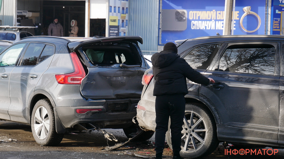 Внаслідок ДТП обидва автомобілі отримали механічні пошкодження. У Volvo – повністю розбите заднє скло, погнутий бампер та деформована задня частини кузова. Також у салоні автомобіля спрацювали “подушки” безпеки. У Audi пошкоджений задній бампер. Під автівками розлетілись уламки пластикових і металевих деталей.