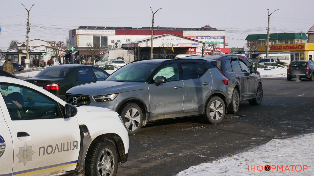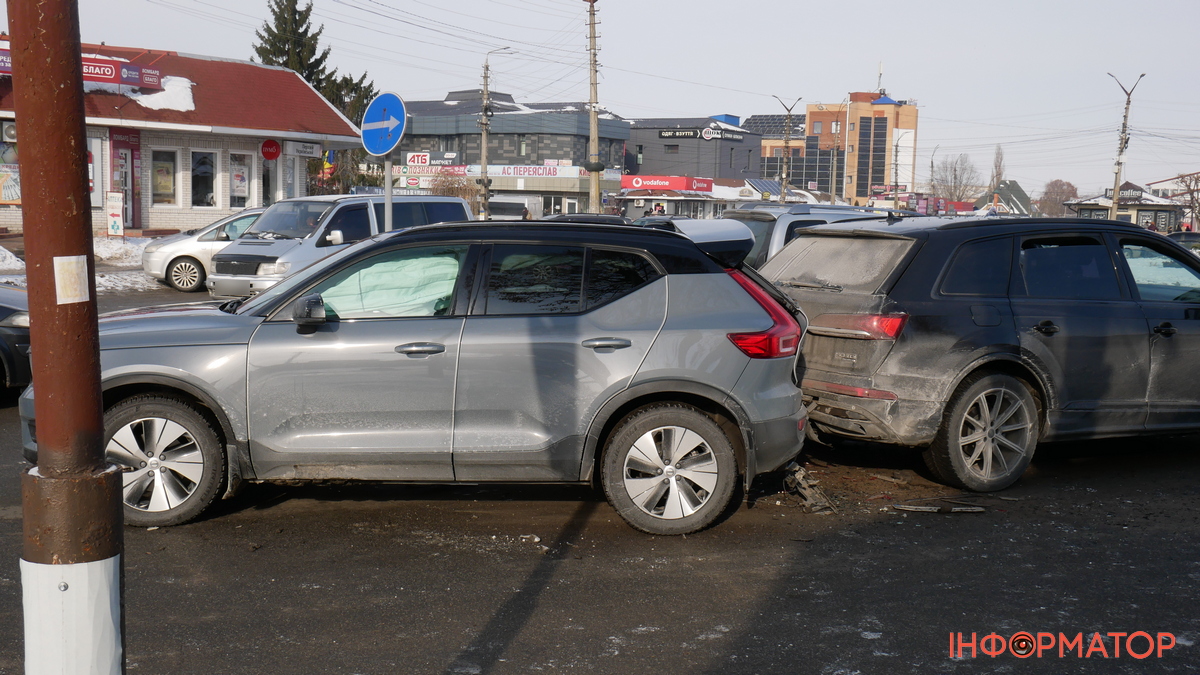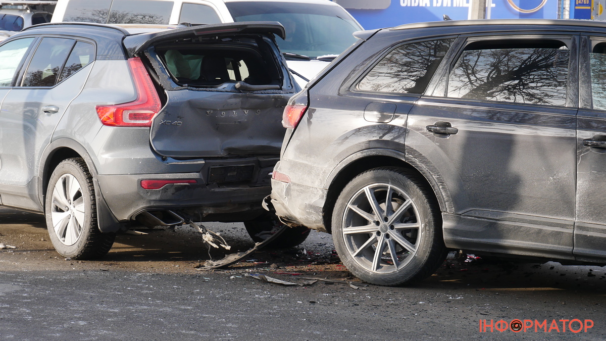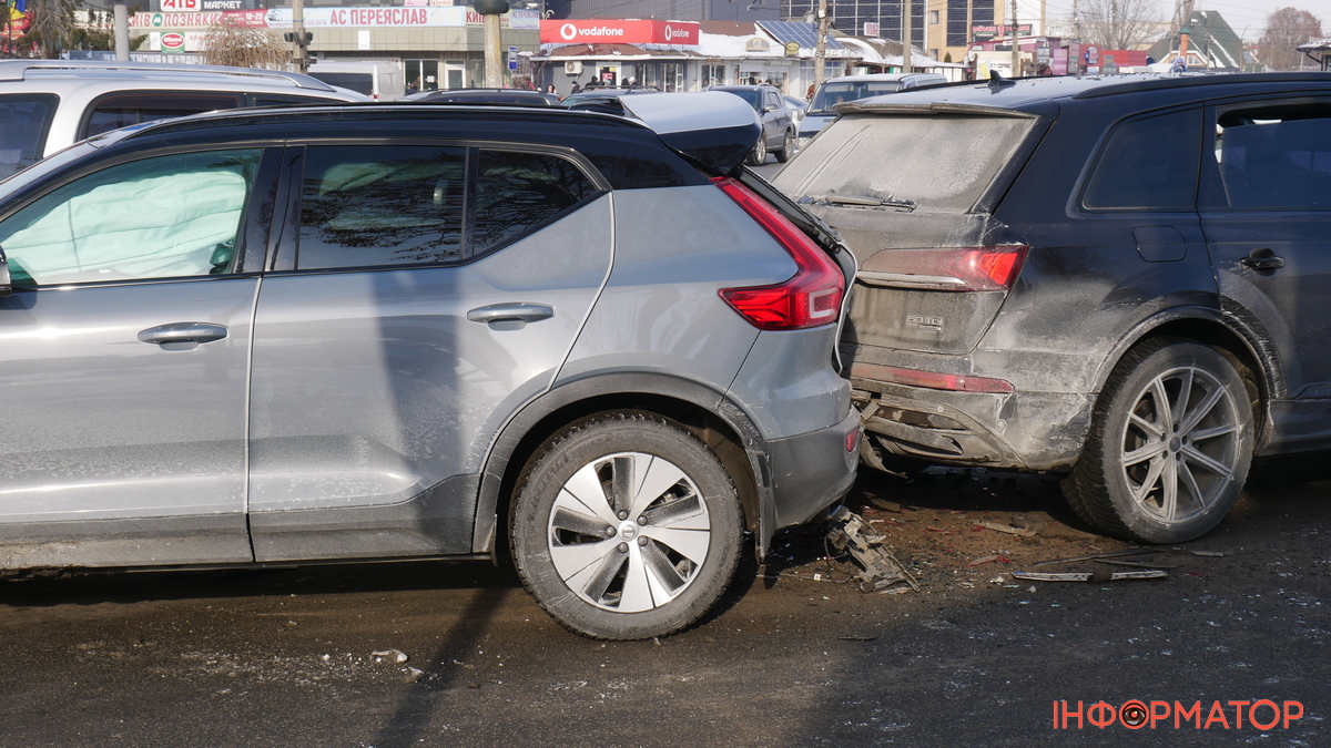 На світлинах видно, що автомобіль Volvo розташований у напрямку вулиці Героїв Дніпра, Audi – у бік кругового перехрестя. Зіткнення сталося задніми частинами обох автівок.