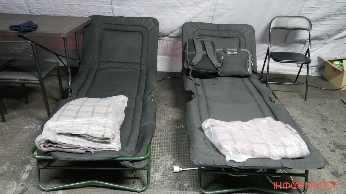 Для дітей у наметі є окремий куточок з настільними іграми та розмальовками. Також є два розкладні ліжка з ковдрами. Загалом у пункті облаштовано близько 20 сидячих місць, водночас перебувати в ньому може вдвічі більше людей.