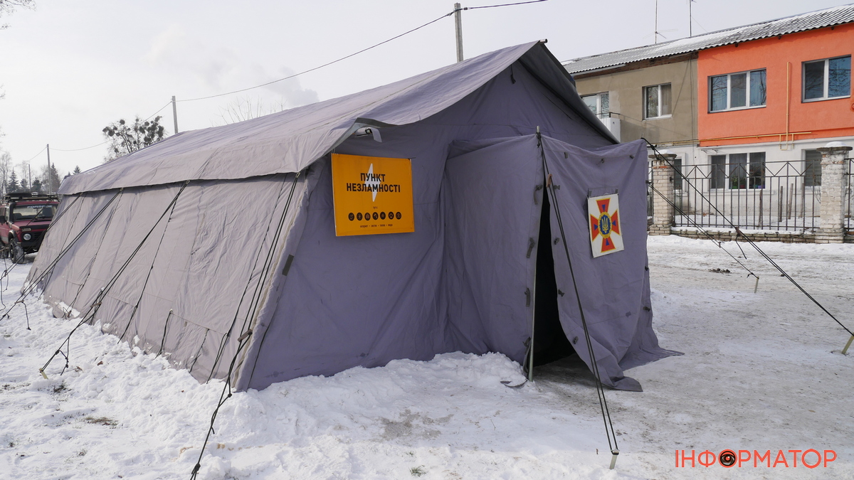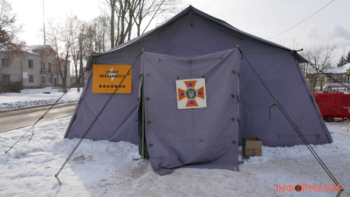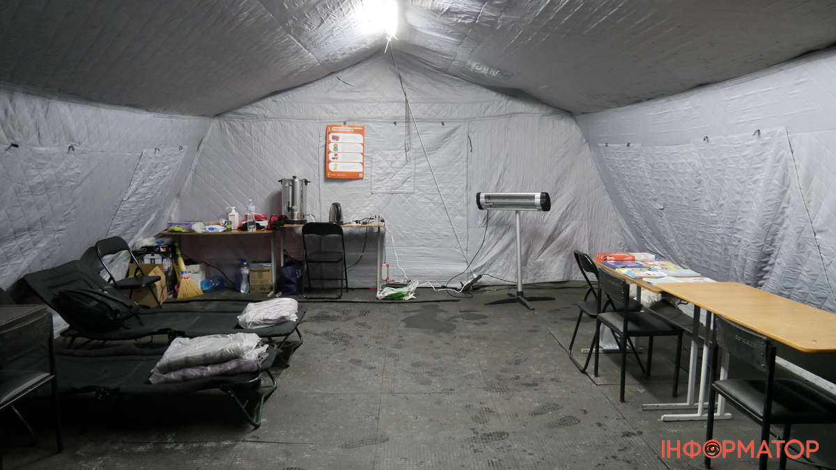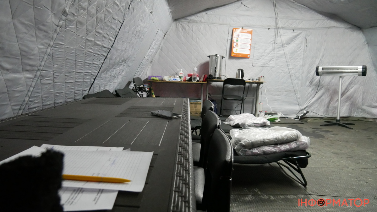 Пункт розташований обабіч дороги на вулиці Героїв Дніпра, тож його легко помітити та знайти. Він працює цілодобово. У наметі постійно чергують кілька рятувальників.